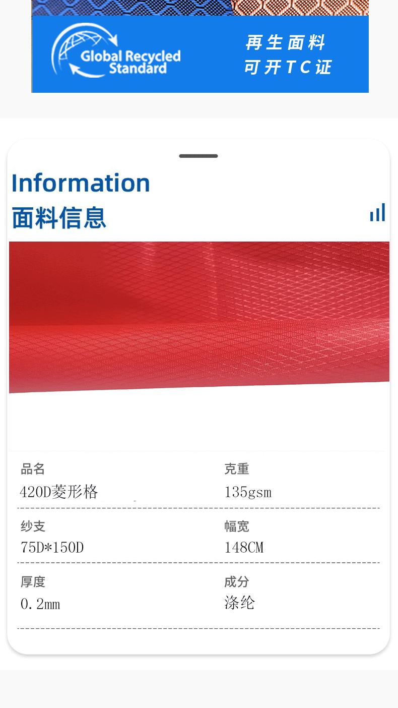 Rpet Reciclado 420D0.4 Tela Oxford Morada de Cuadros Diamante Recubierta de Pu Tela para Equipaje Tela de Correa con Cordón