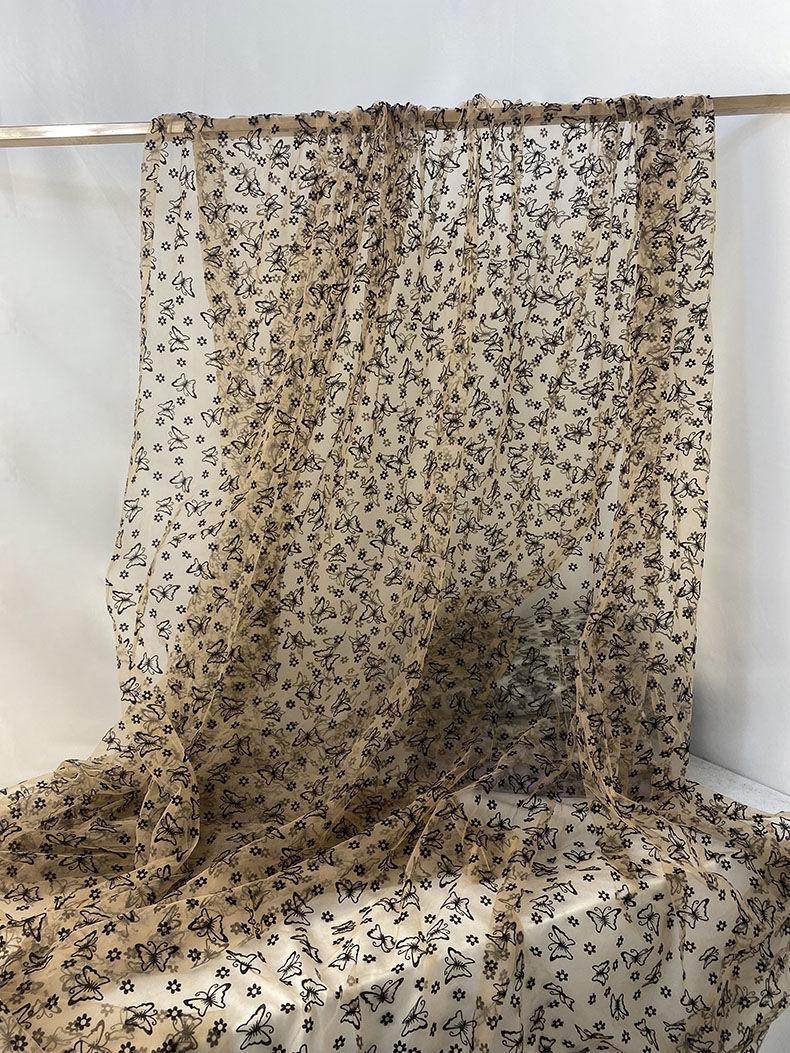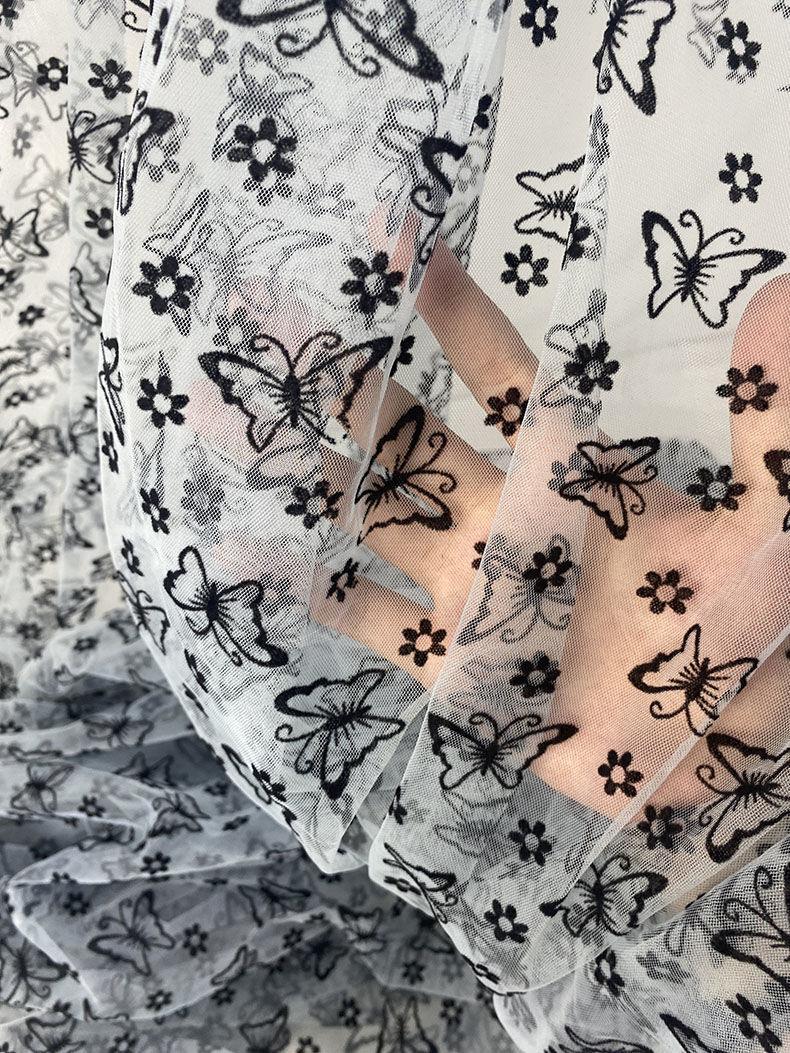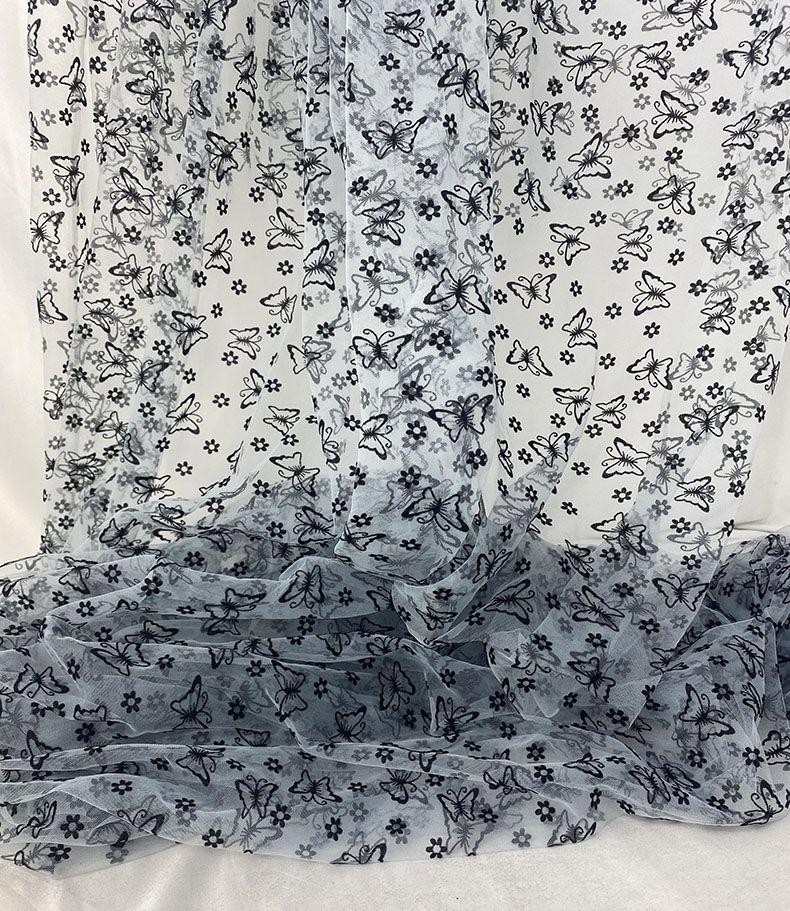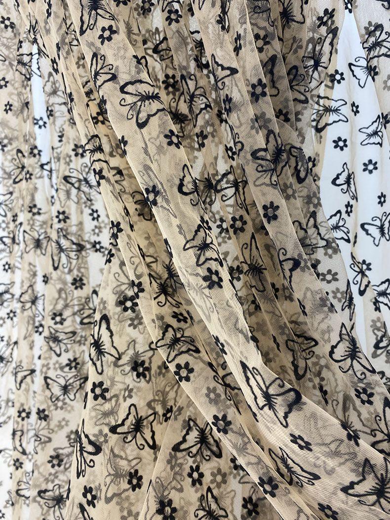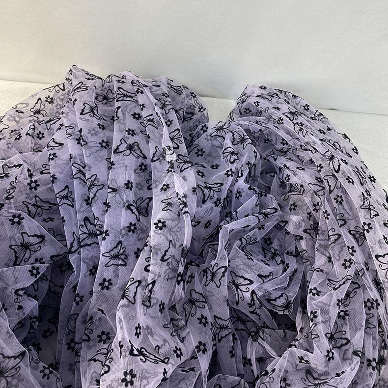 Tela de Malla Flocada de Alta Gama Mariposa Flor Gasa Suave Vestido de Novia Vestido de Boda Hecho a Mano Diseño DIY Tela