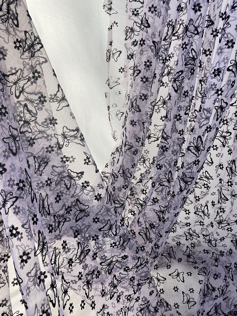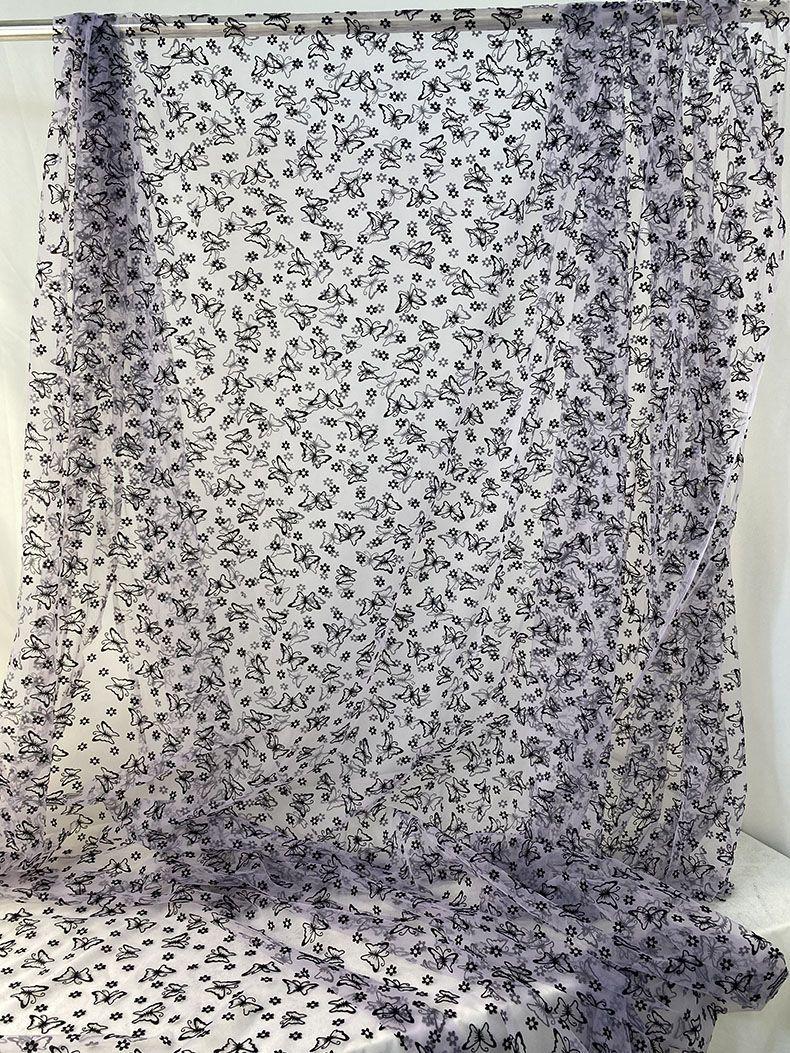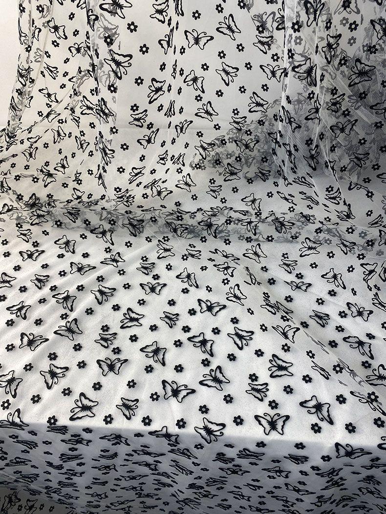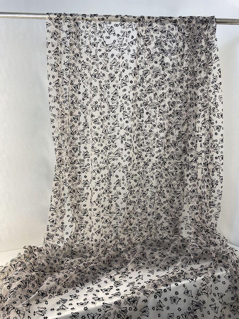 Tela de Malla Flocada de Alta Gama Mariposa Flor Gasa Suave Vestido de Novia Vestido de Boda Hecho a Mano Diseño DIY Tela