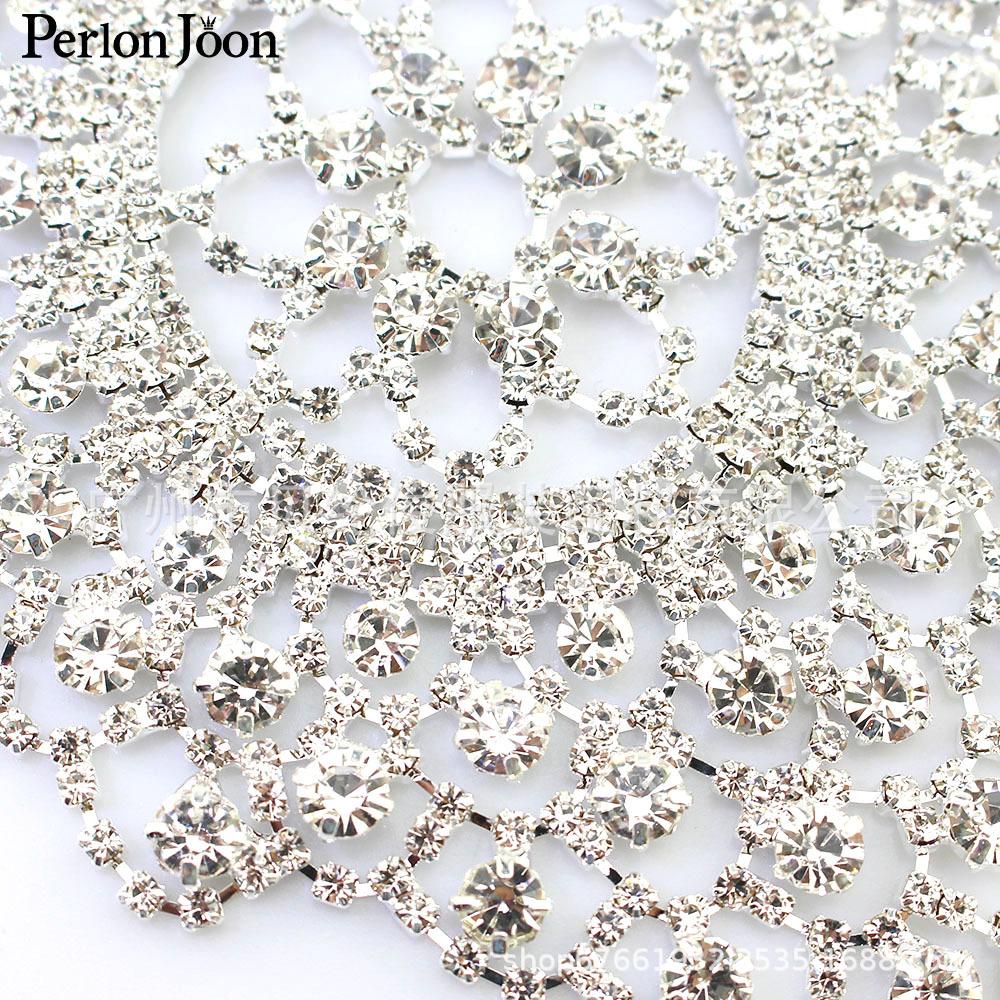 En stock, venta al por mayor, comercio exterior, superventas, ovalado, superdeslumbrante, vestido de flores con diamantes de imitación, accesorios de decoración para vestido de novia