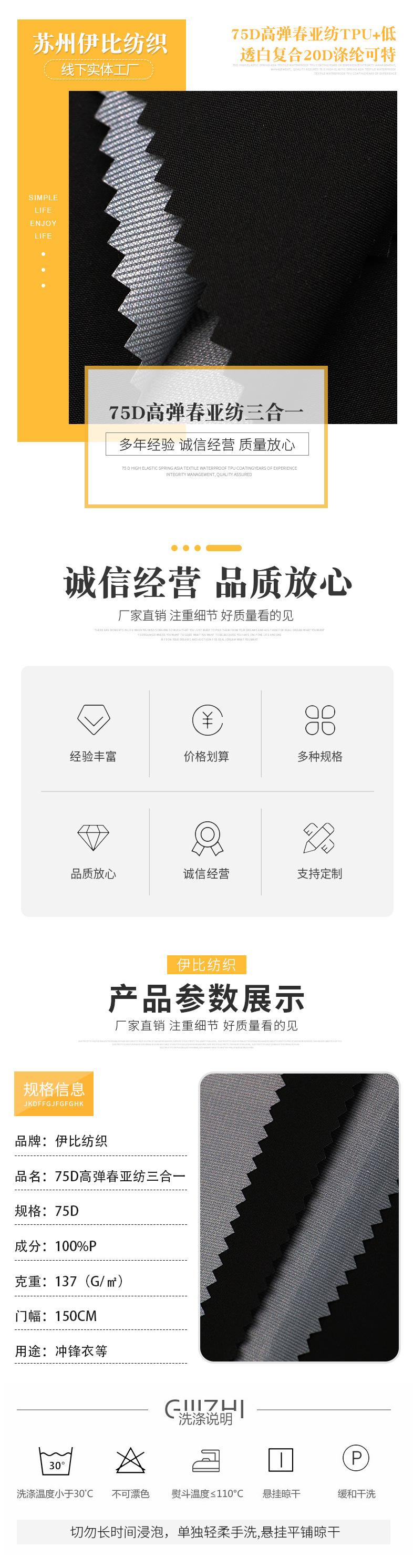 Tela para ropa de asalto, ropa de esquí, hilado Chunya de alta elasticidad 75D, tres en uno, repelente al agua, resistente al frío, resistente al desgarro