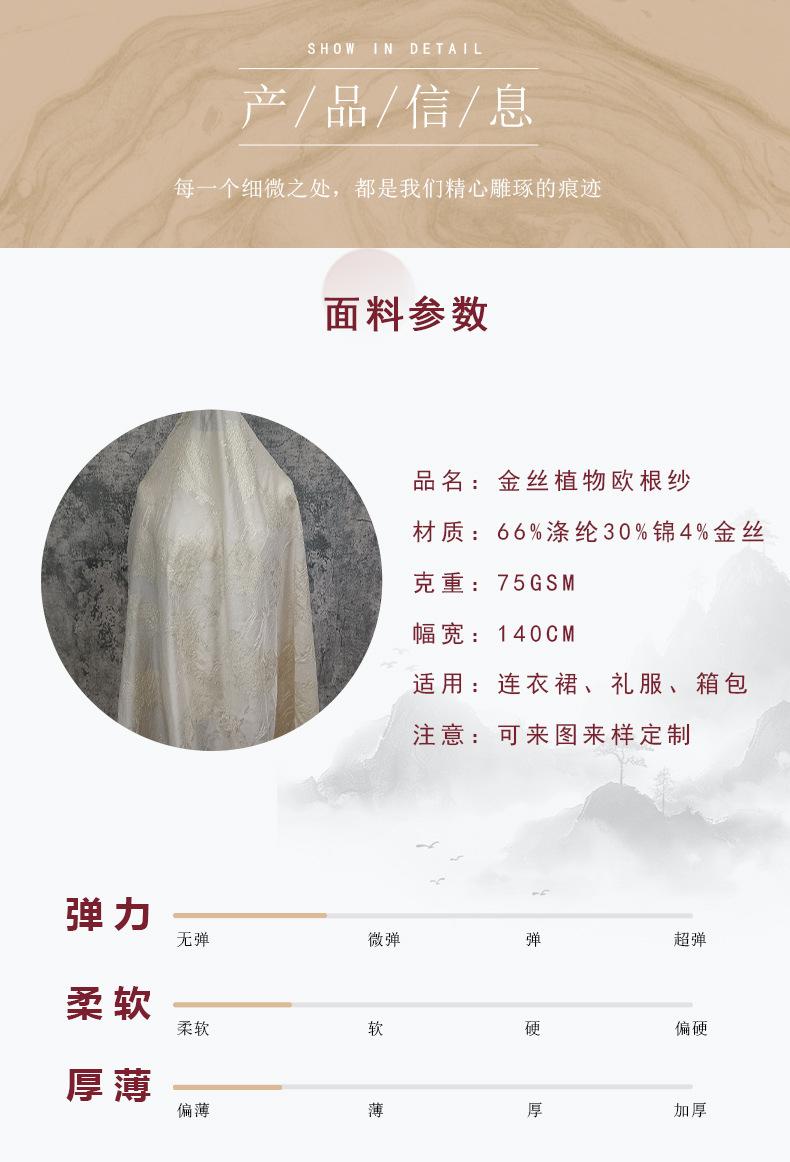Organza microtransparente tejida seda dorada relieve de planta jacquard hilo flor cortada tela ropa para niños vestido ropa tela decorativa