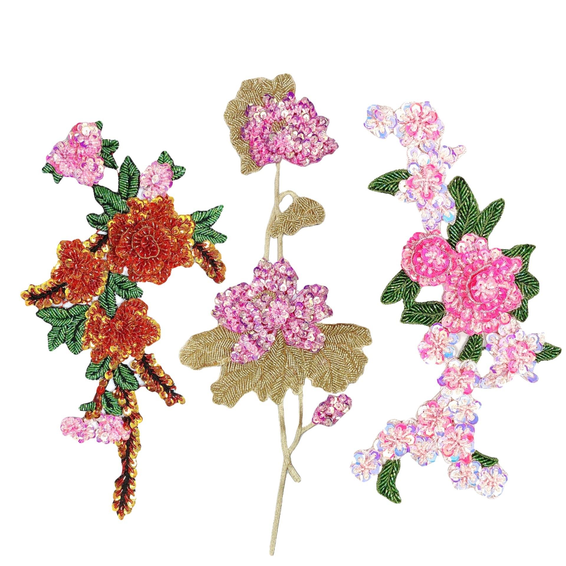 Parche de tela con bordado de flores y cuentas hecho a mano, para ropa, sombrero, decoración, bricolaje, parche con agujero, apliques, accesorios de ropa