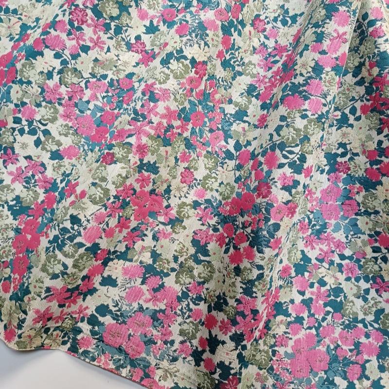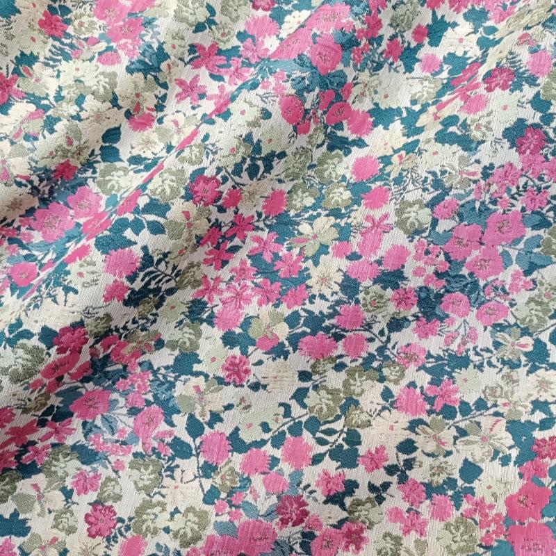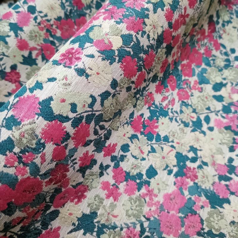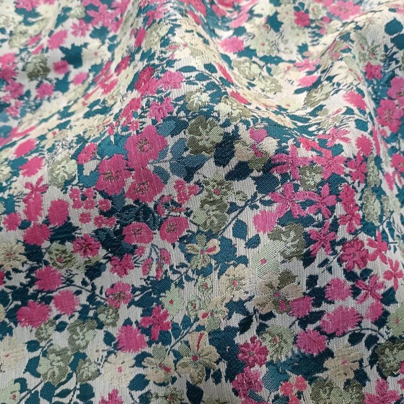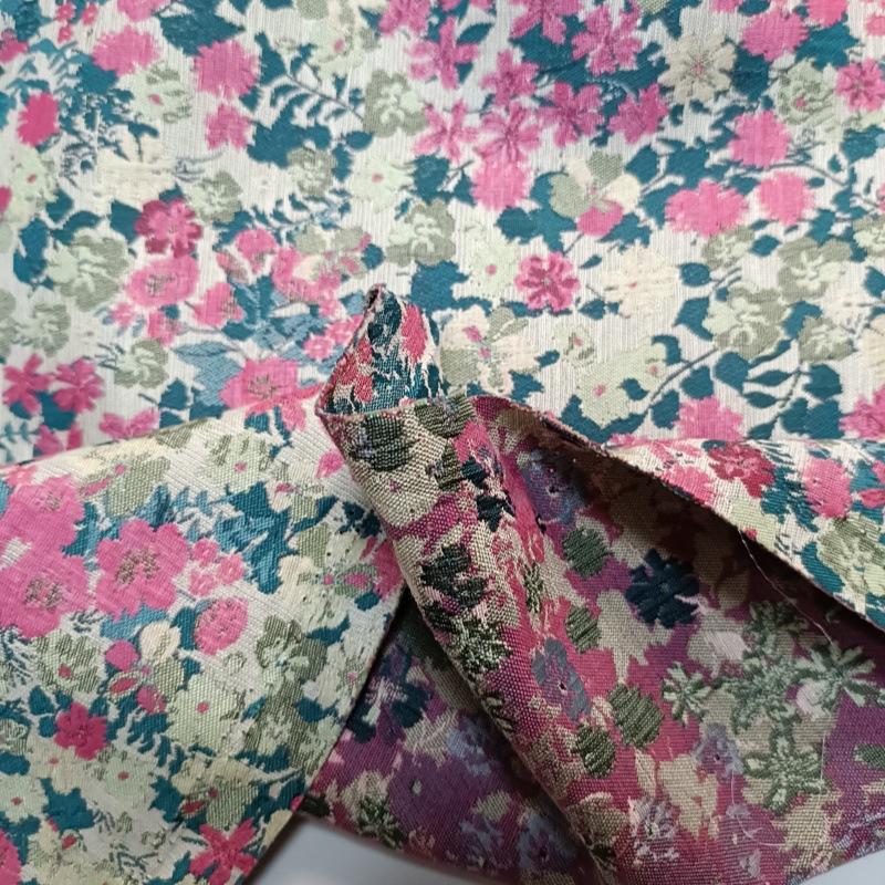 Tela jacquard con relieve floral, pequeña, fresca, rosa y morada, estilo pastoral, para vestidos, bolsos y zapatos de mujer.