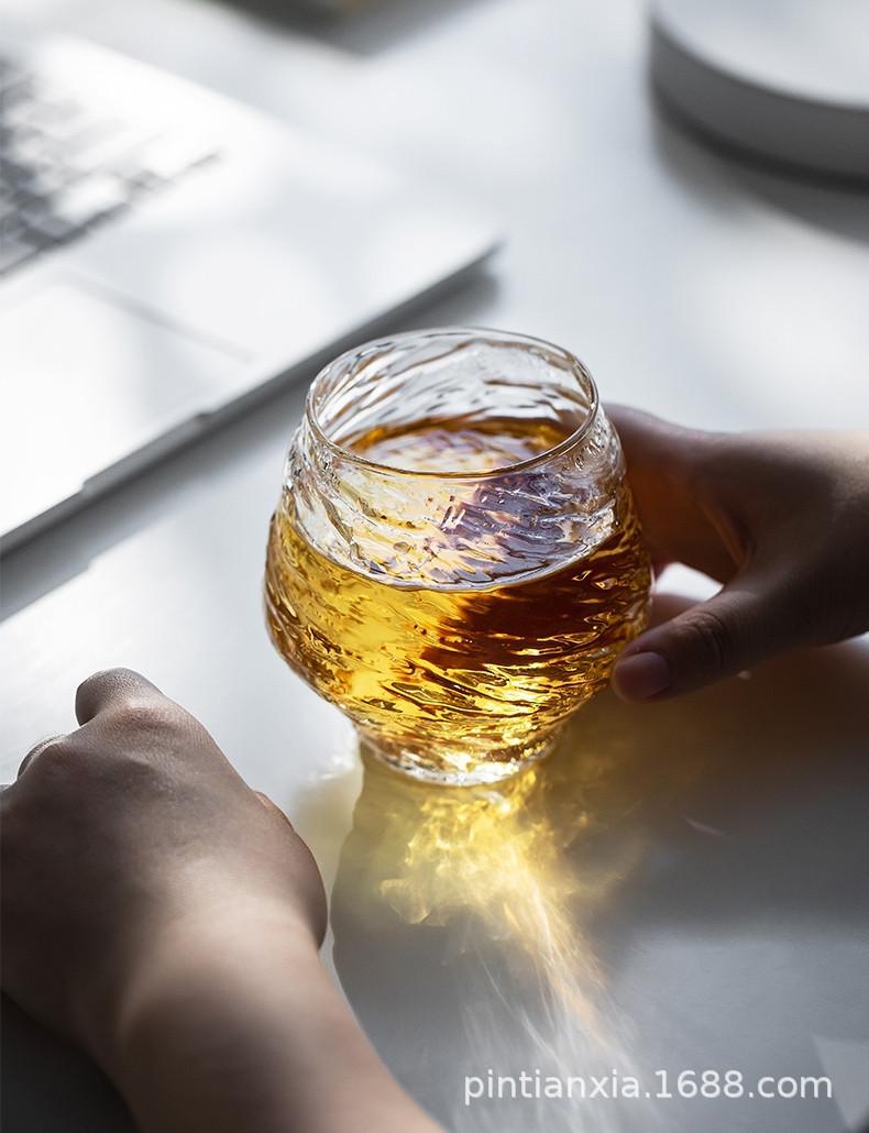 Taza de agua de vidrio de estilo japonés, resistente al calor, transparente, con patrón de martillo, taza de té, taza de agua personal para oficina y hogar, taza de jugo, taza de bebida
