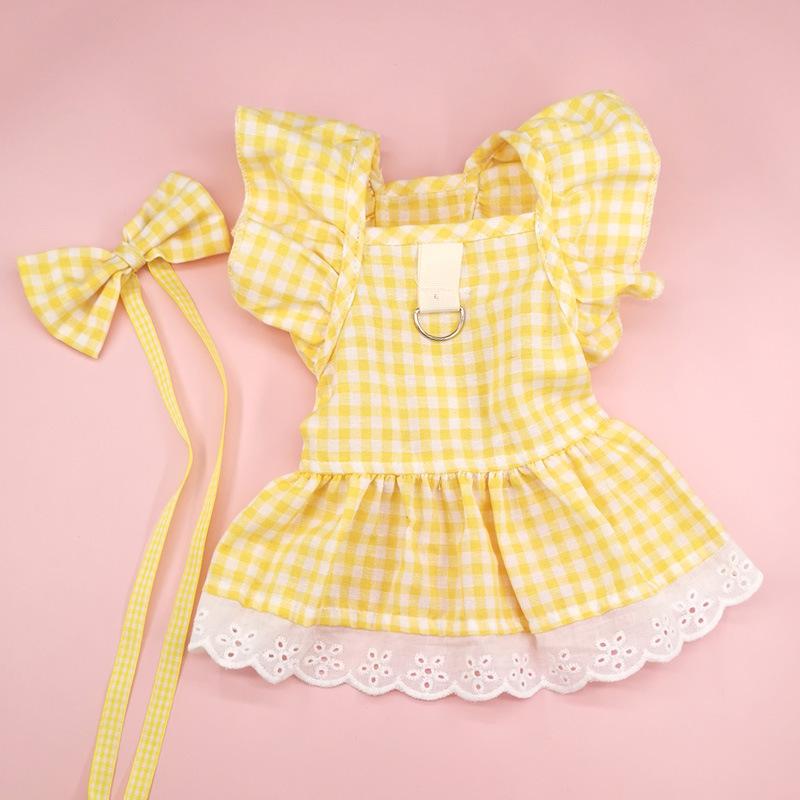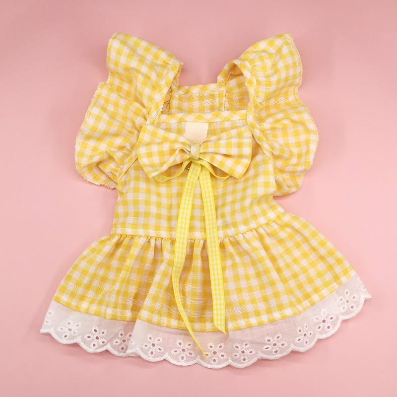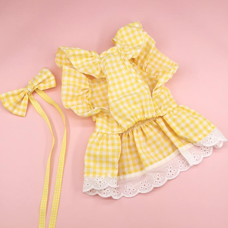 Pet Yellow Grace Skirt + Head Flower Bow Tie