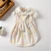 Pet powder sunflower lace skirt + head flower bow tie