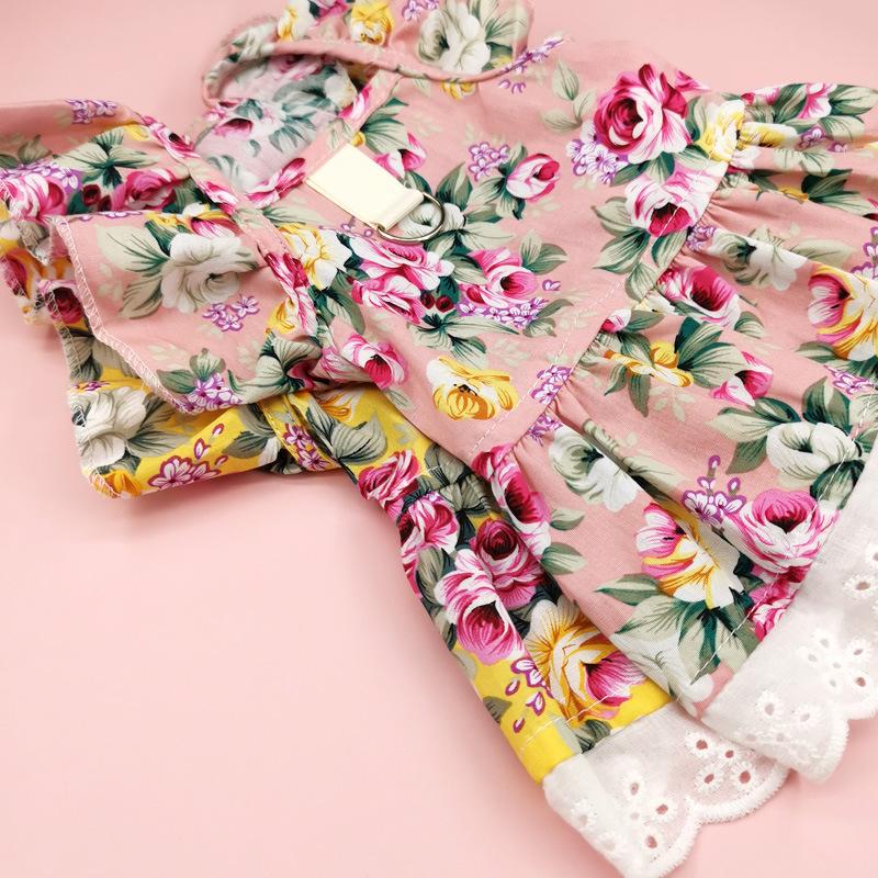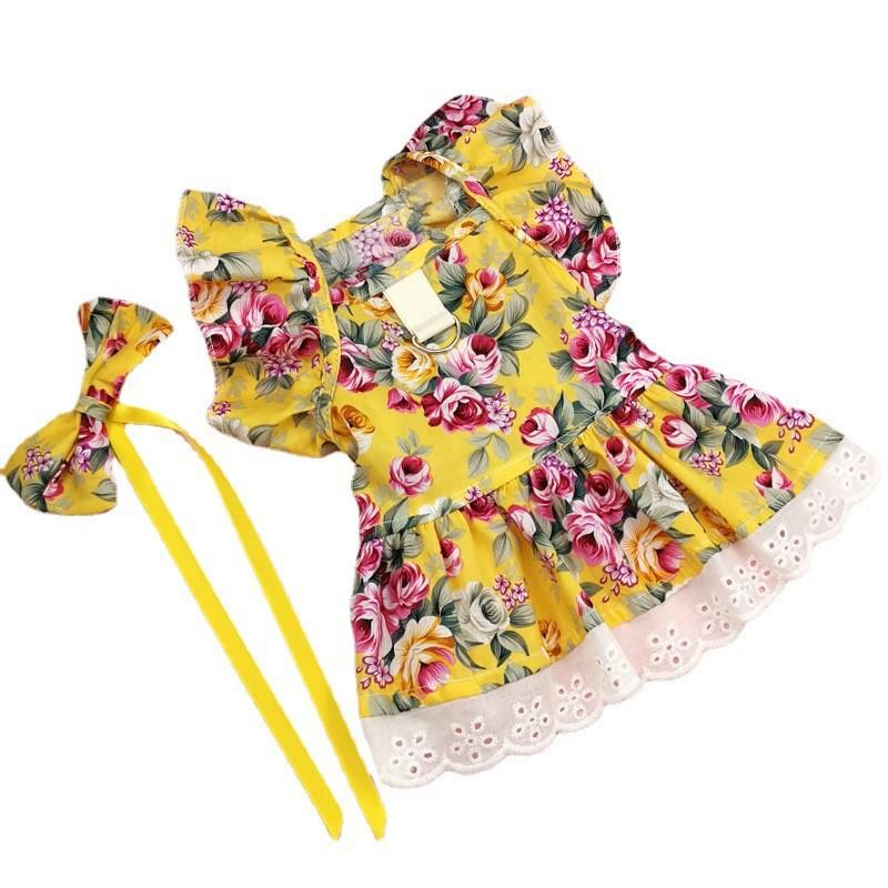 Pet yellow sunflower lace skirt + flower bow tie, Pet powder sunflower lace skirt + head flower bow tie, Pet P...