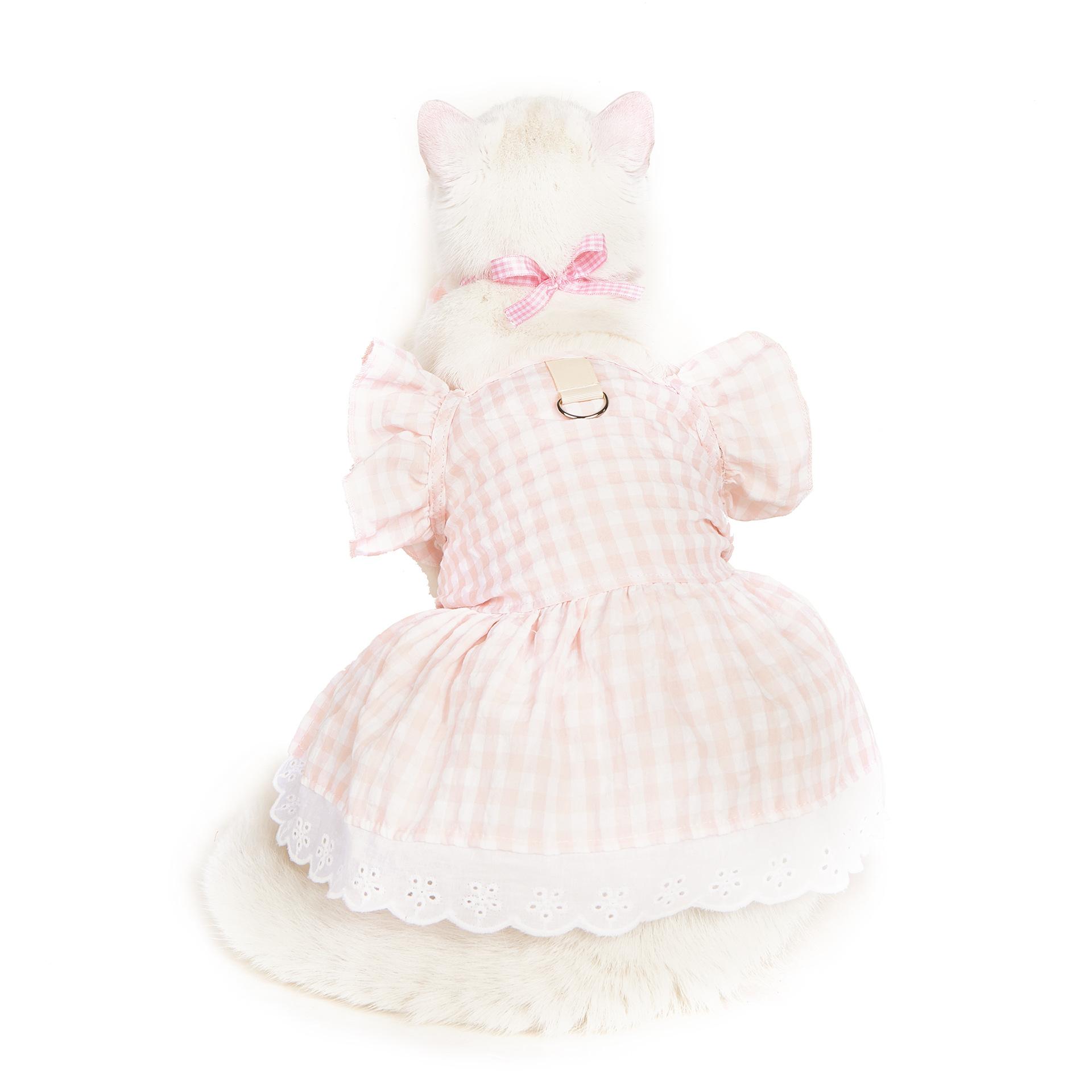 Pet light pink Grace skirt + head flower bow tie