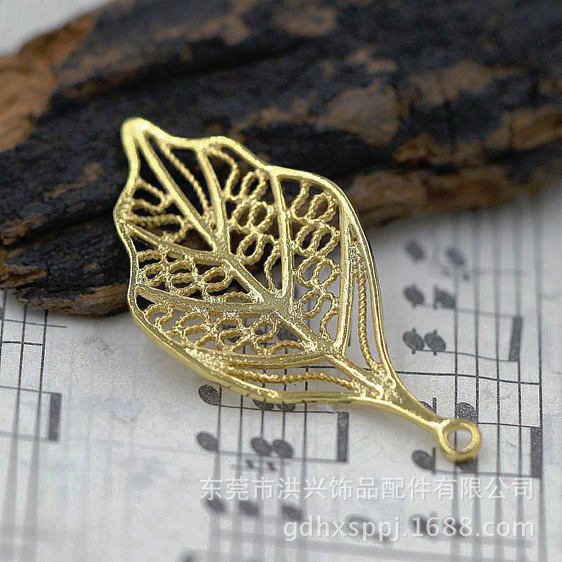 Accesorios de joyería hechos a mano DIY, pendientes de oro real de 24k, pulsera, collar, accesorios, horquilla, material de cobre, hojas, A679