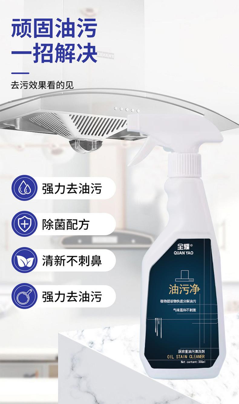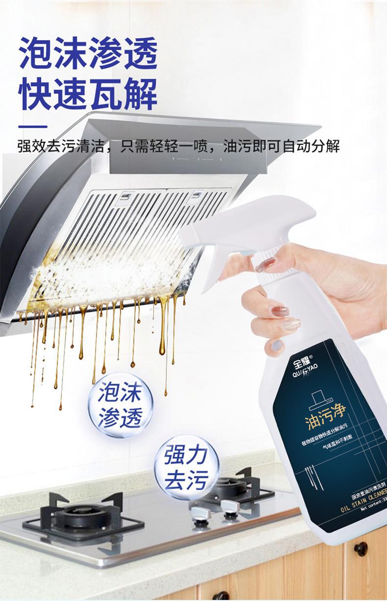 Limpiador de manchas de aceite Quanyao, potente limpiador para campanas extractoras de cocina, limpiador de aceite pesado, espuma desincrustante.
