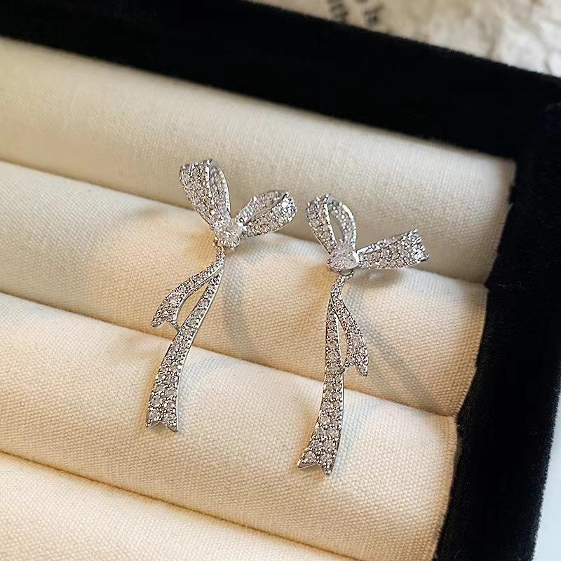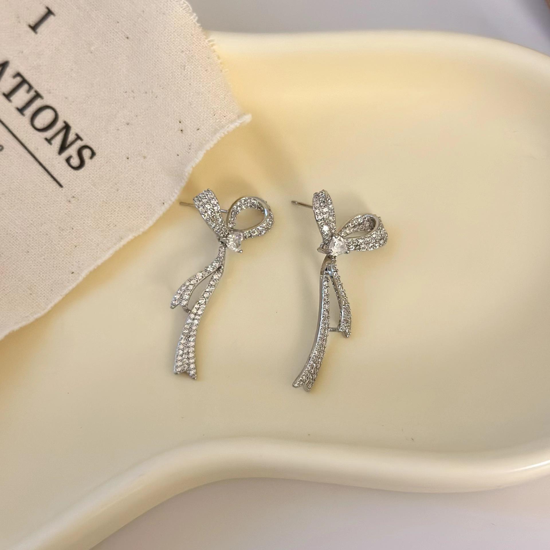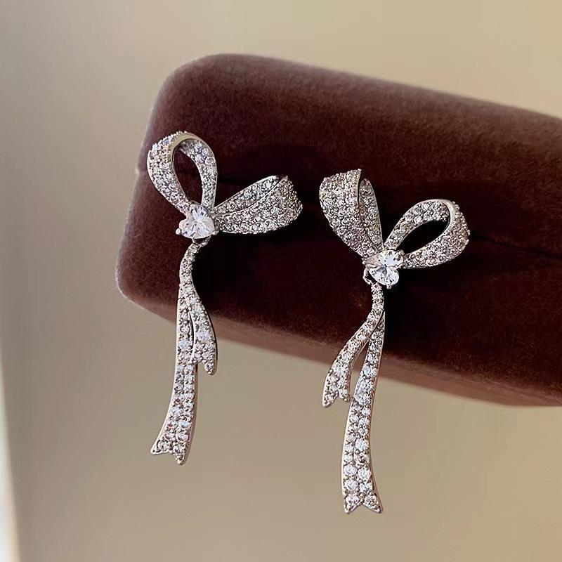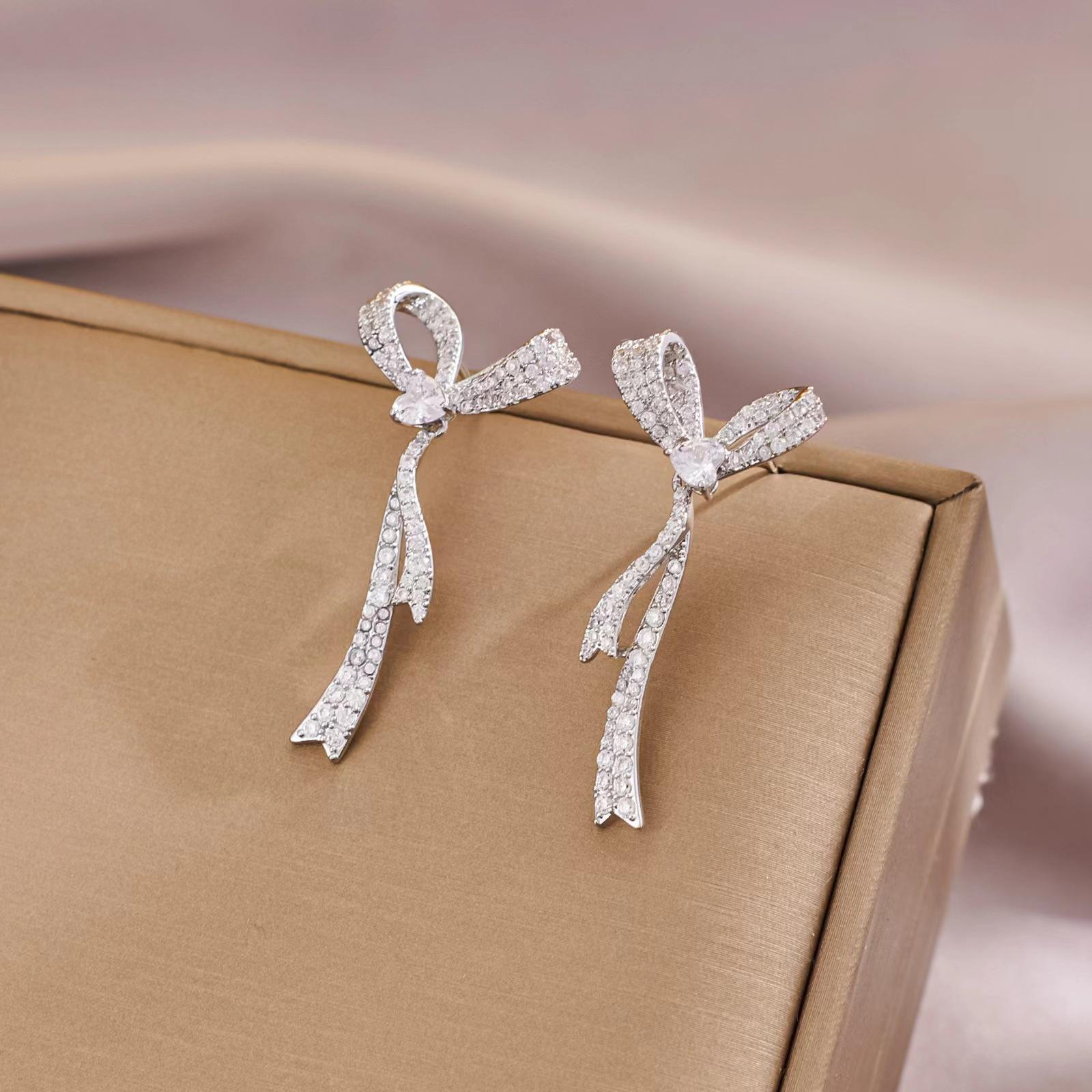 Pendientes elegantes con lazo, diseño de nicho, sencillos, exquisitos, a la moda, dulces, frescos, de alta gama.
