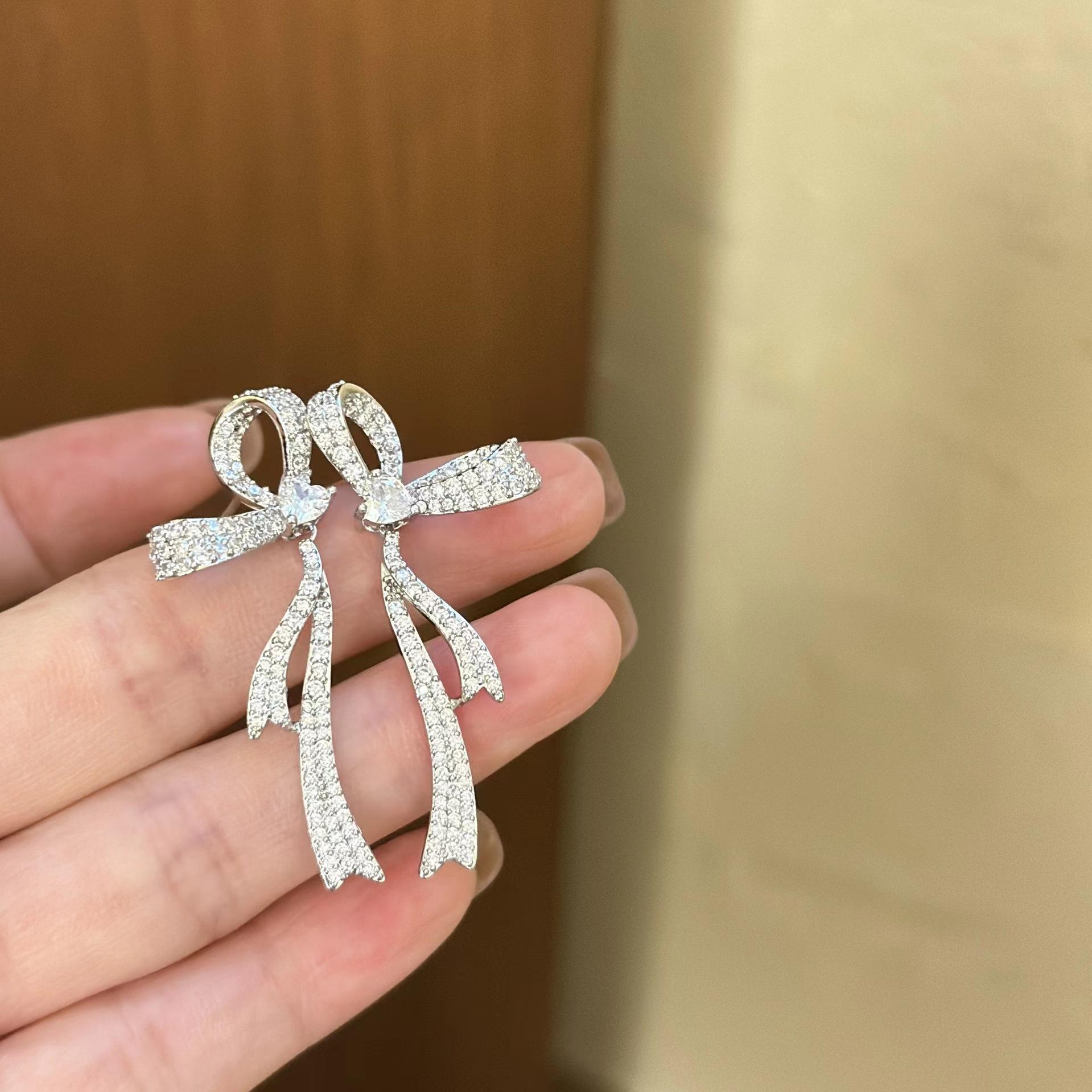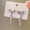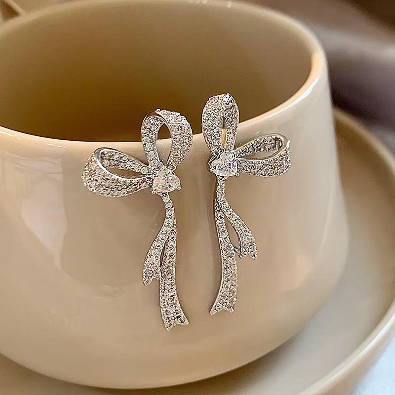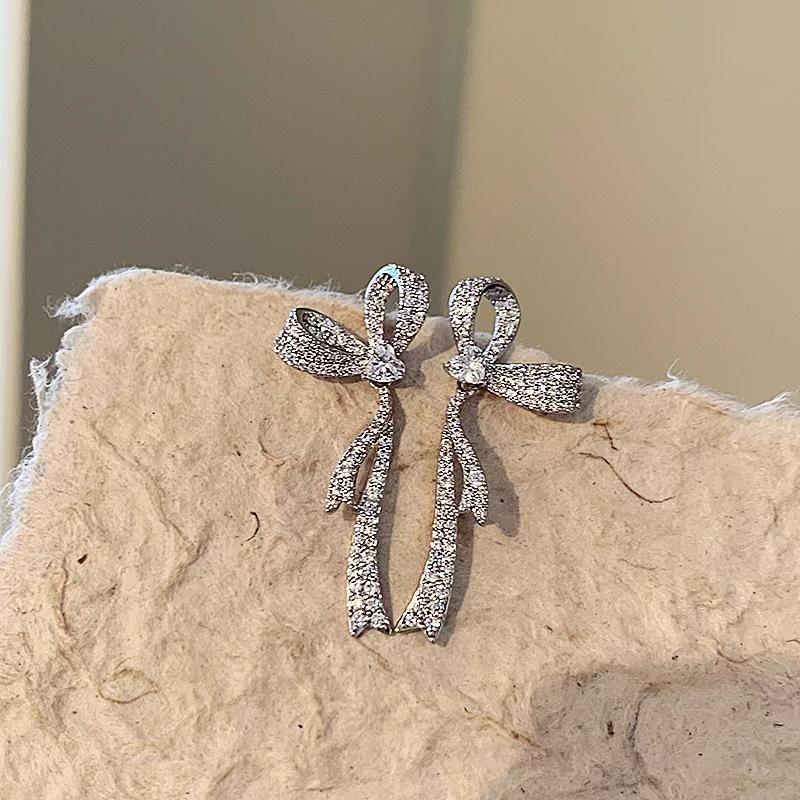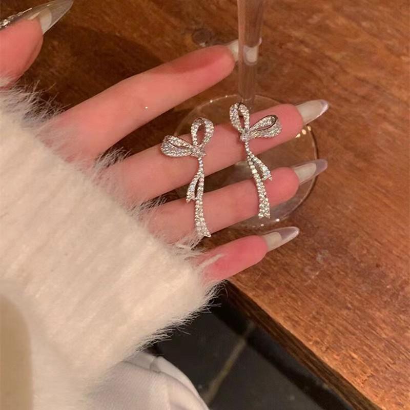 Pendientes elegantes con lazo, diseño de nicho, sencillos, exquisitos, a la moda, dulces, frescos, de alta gama.