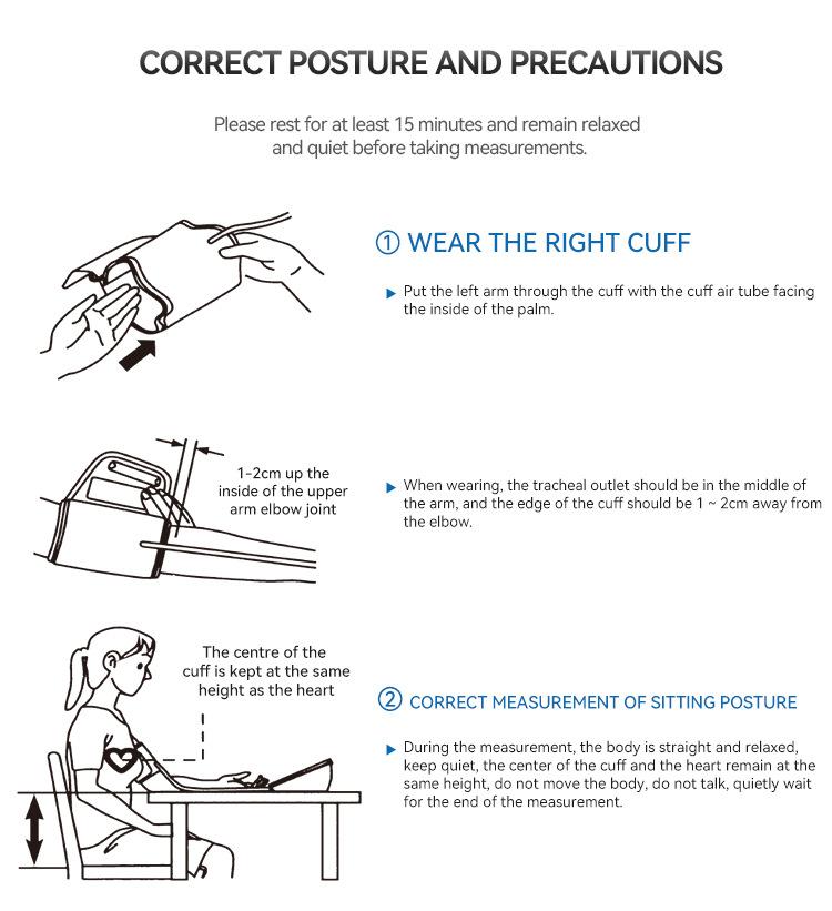 Instructions, certificate, cuff, 4 dry batteries