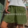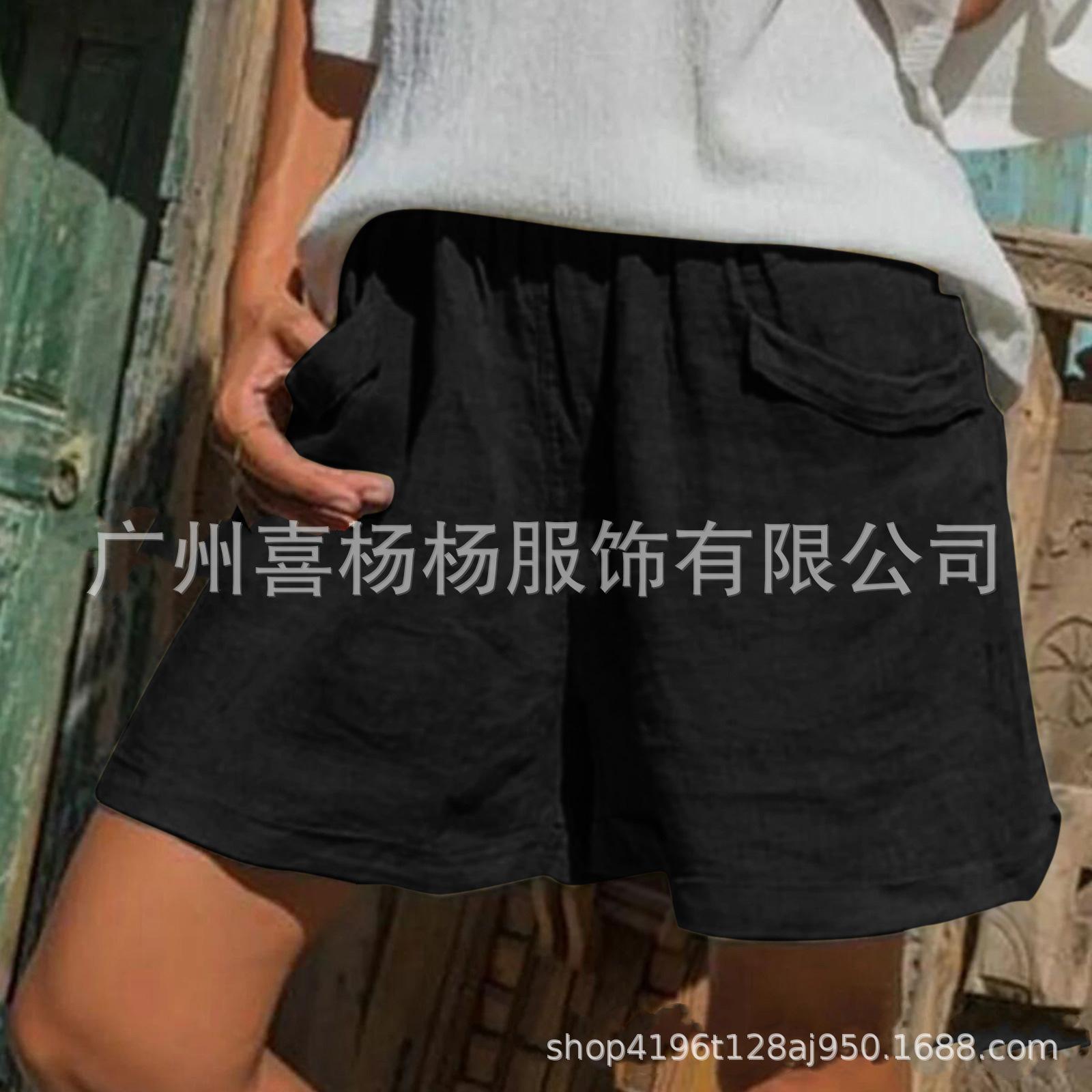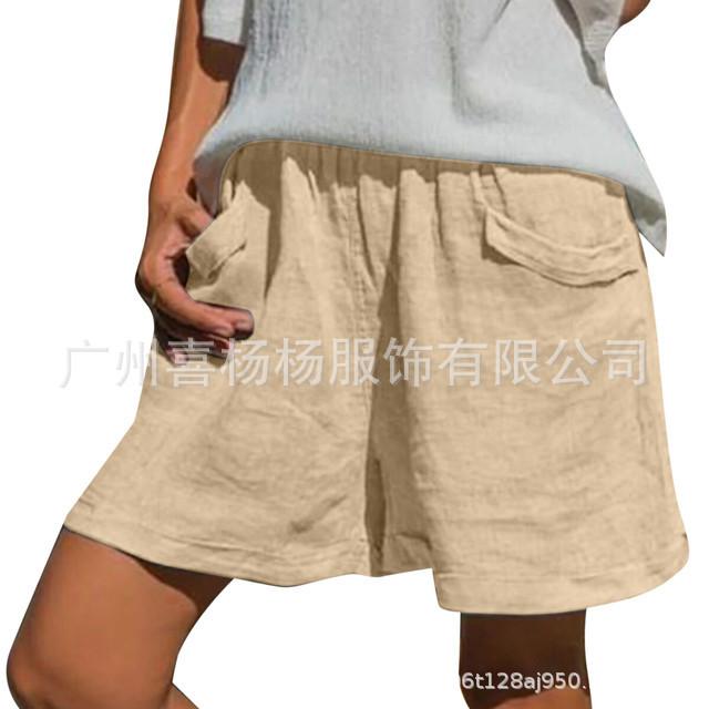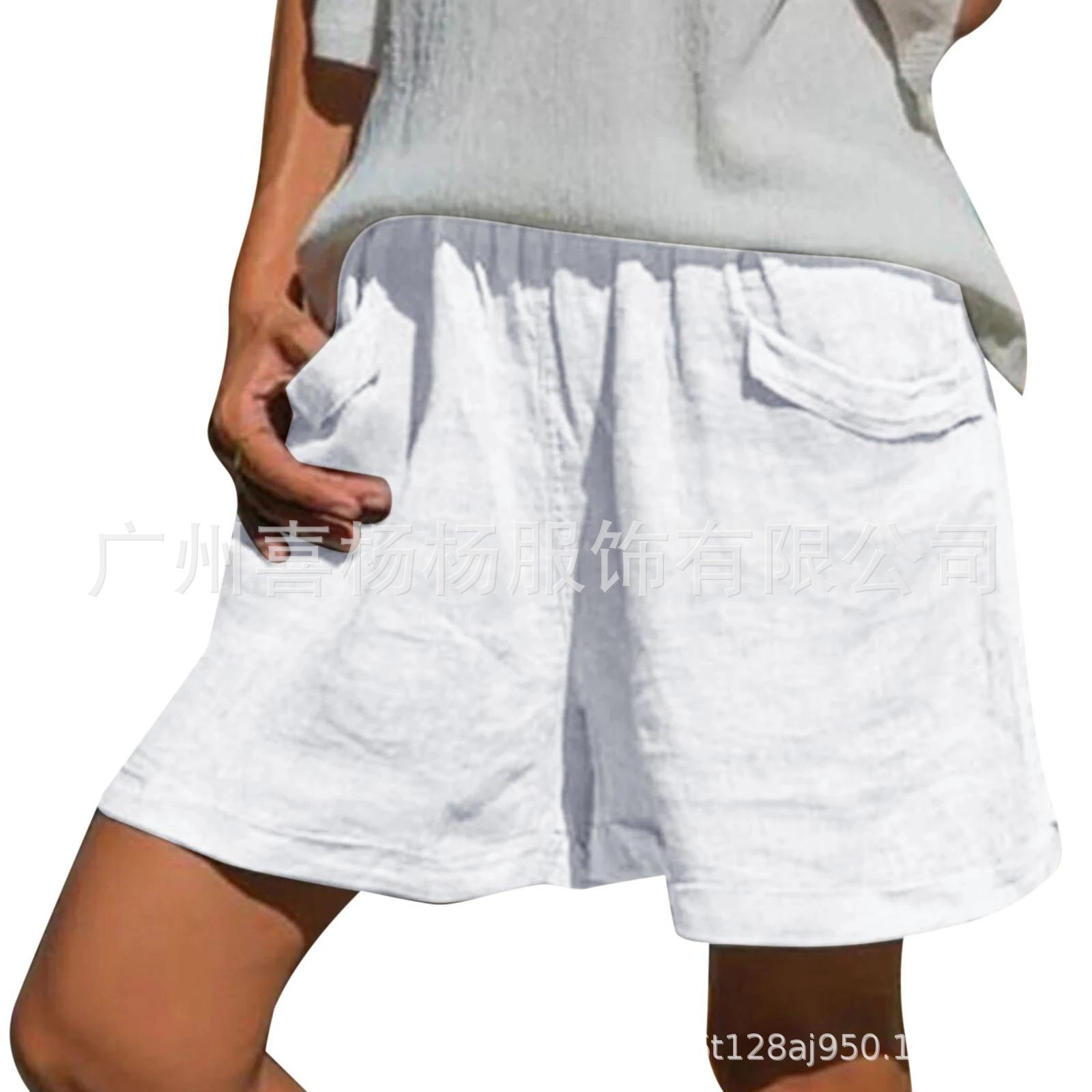 Pantalones cortos básicos de verano de alta calidad para mujer, color liso, cintura elástica, informales, con bolsillo, cómodos y sueltos para uso diario.