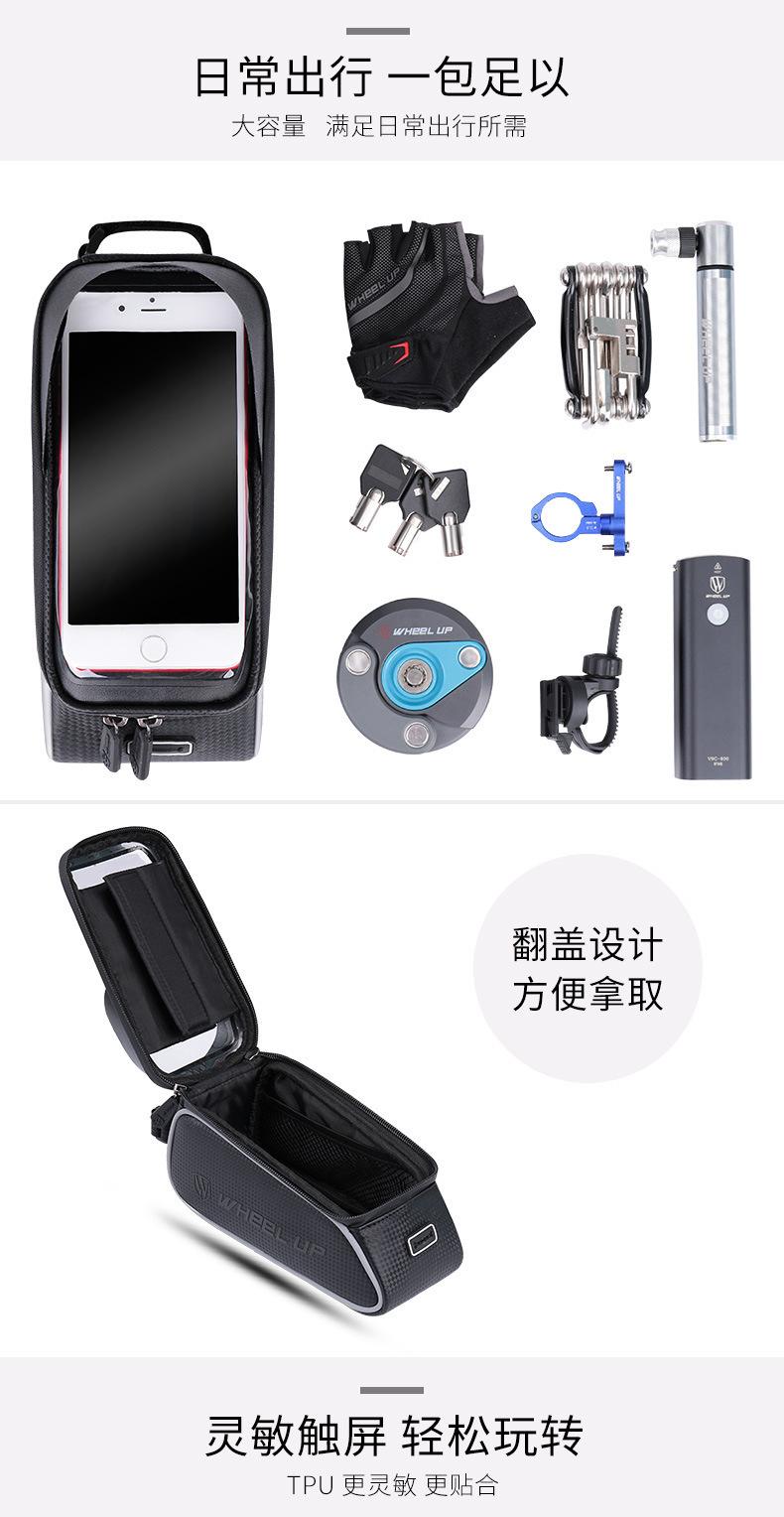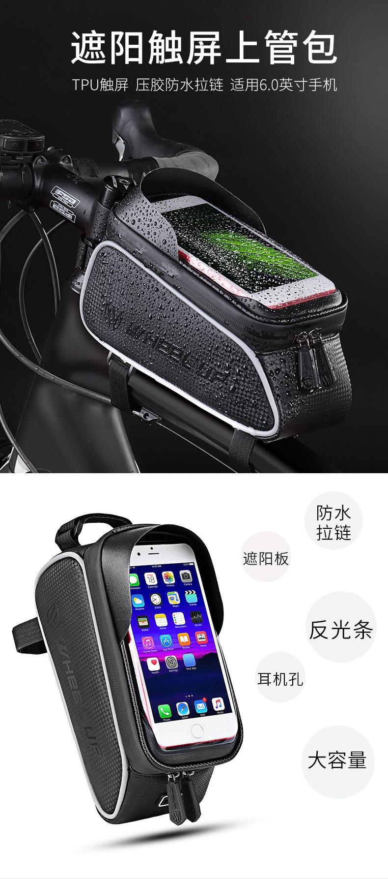 Bolsa para bicicleta, bolsa para viga delantera, bolsa para teléfono móvil, bolsa de almacenamiento impermeable para tubo superior, bolsa para andar en bicicleta de montaña, bolsa para sillín, accesorios para equipo