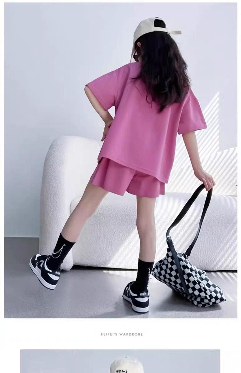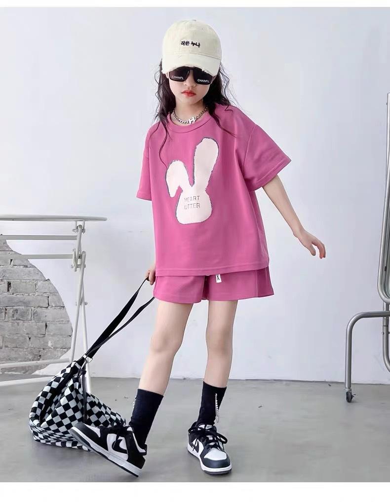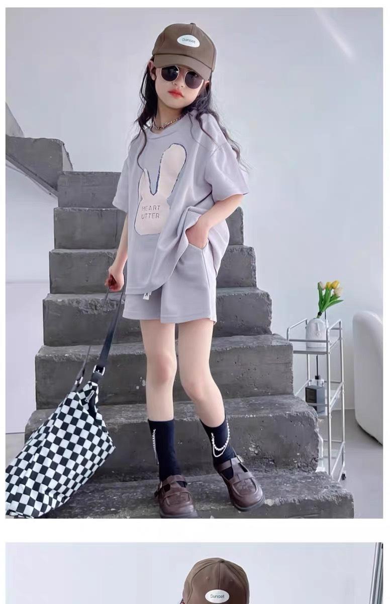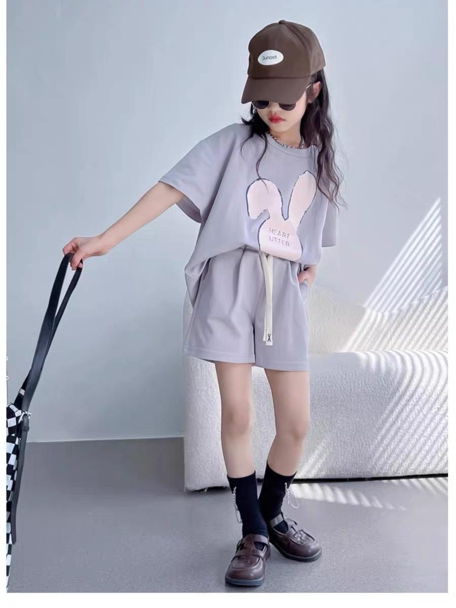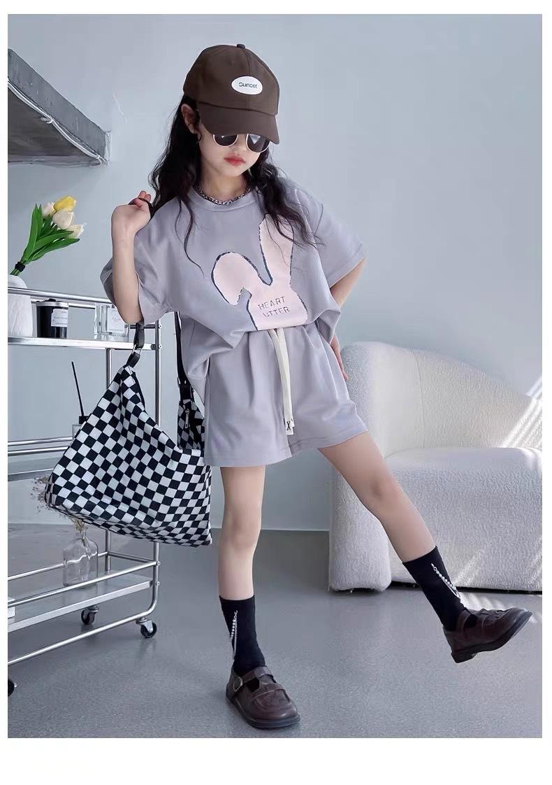 Traje de dos piezas de estilo occidental de moda para niñas, verano 2024, nuevo traje de manga corta para niñas, vestido informal de verano para niñas.