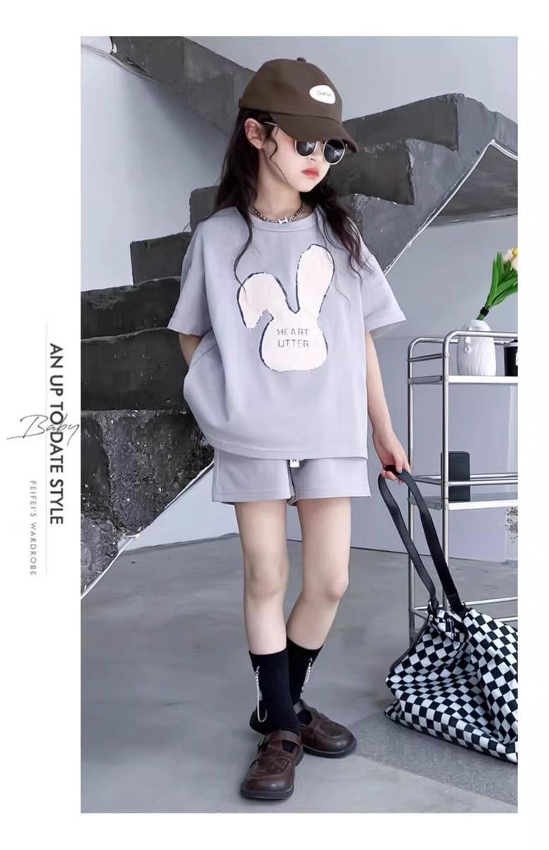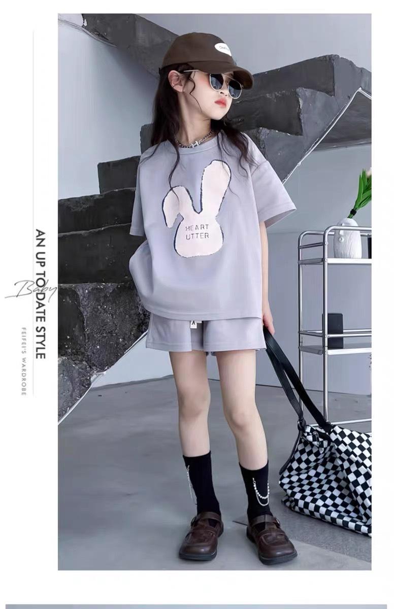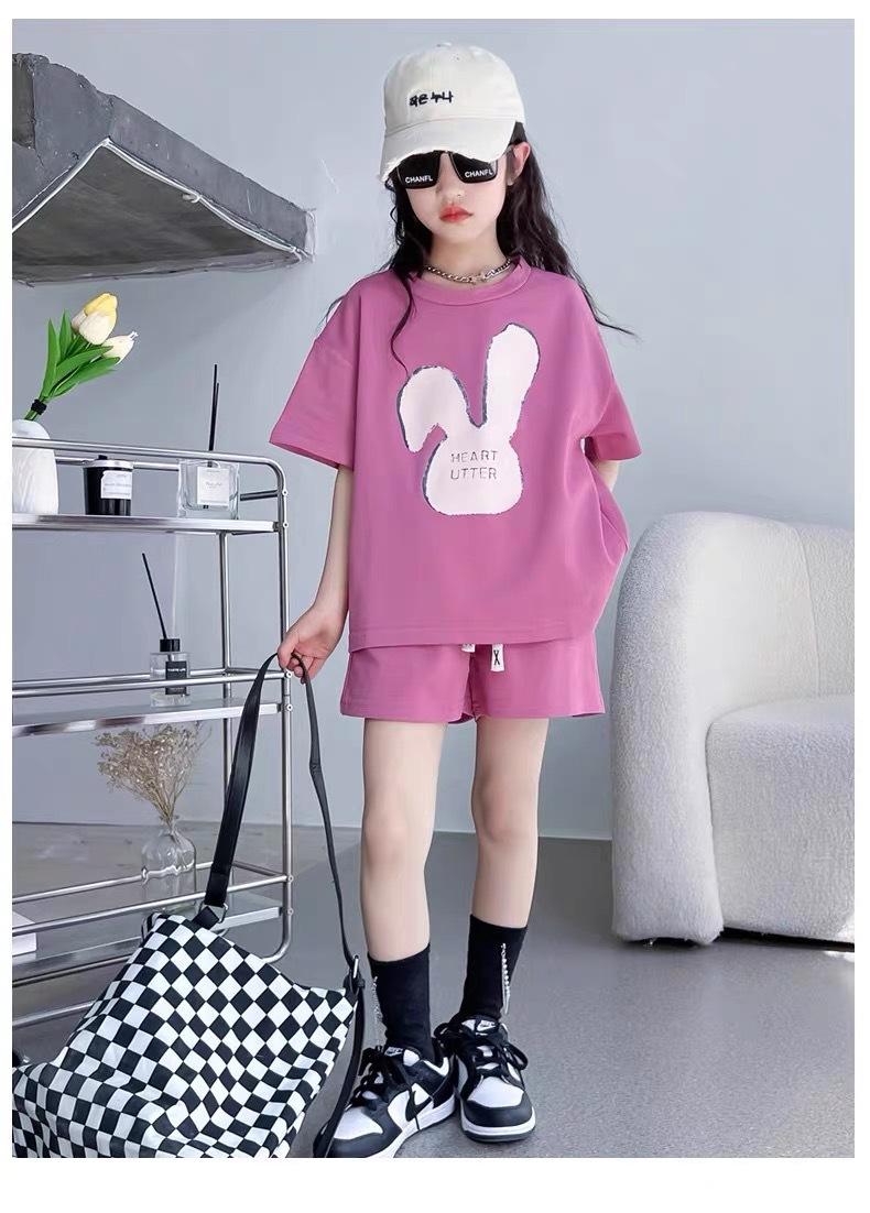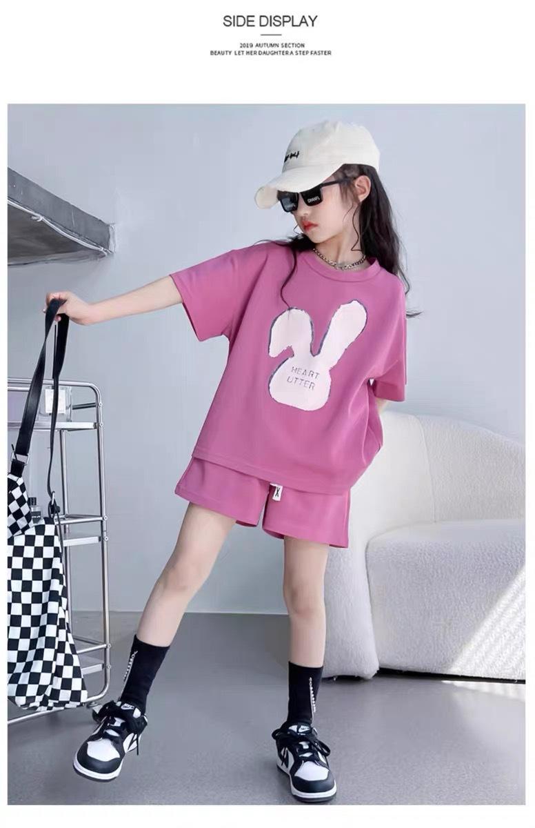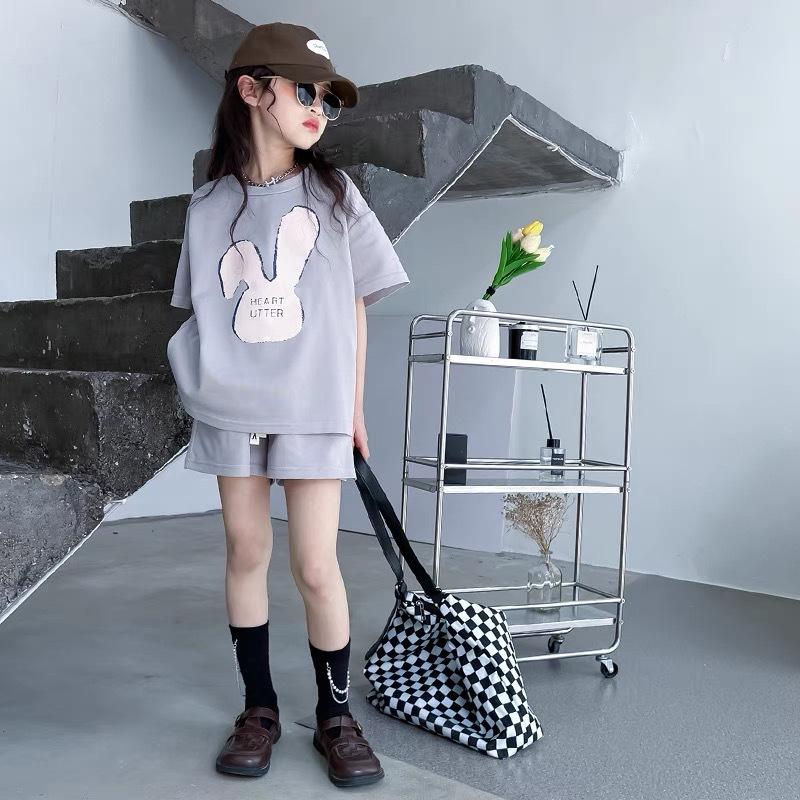 Traje de dos piezas de estilo occidental de moda para niñas, verano 2024, nuevo traje de manga corta para niñas, vestido informal de verano para niñas.