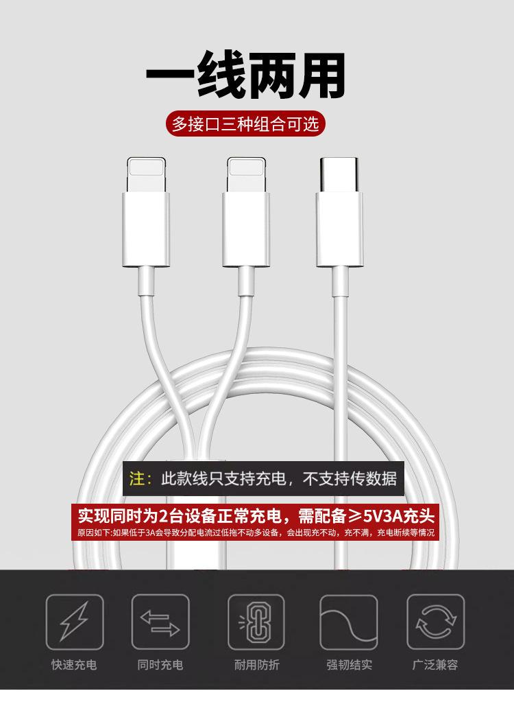 Cable de datos uno a dos para Apple Huawei Dual Type-C dos en uno de carga rápida teléfono móvil Android carga USB para automóvil