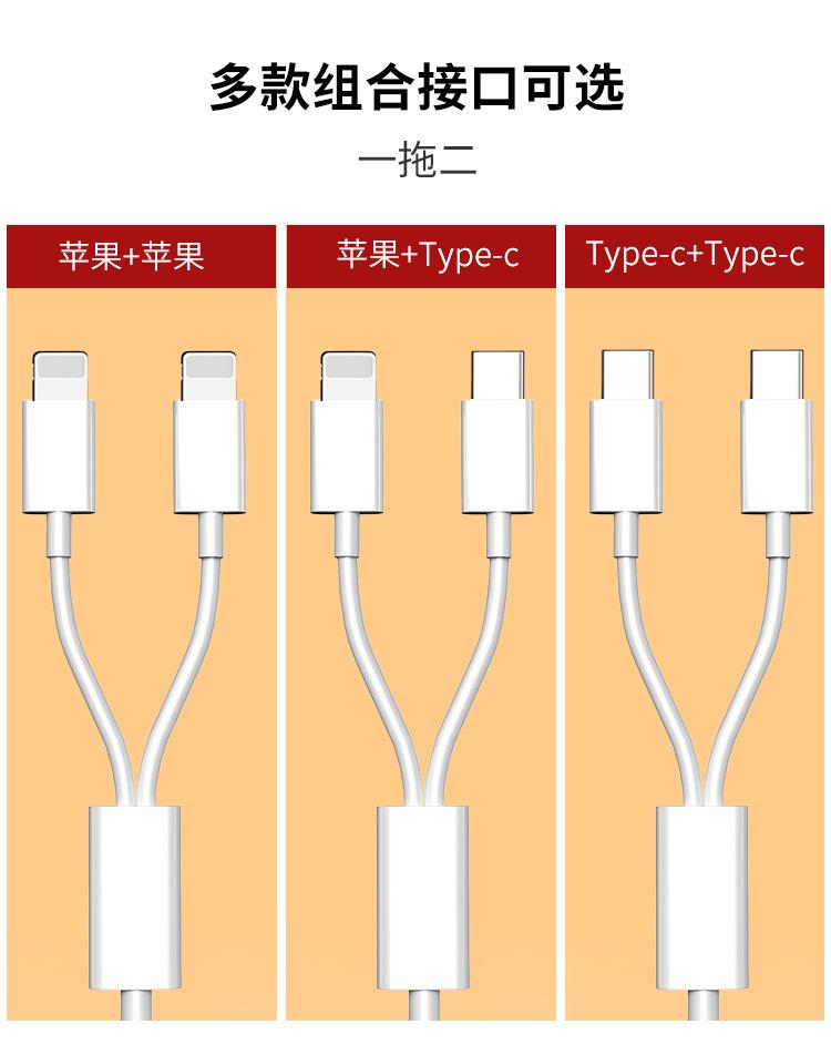 USB one to two [apple + apple], USB one to two [apple + typec], USB one to two [typec+typec], Typec one to two...