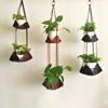 Colgador de Plantas Cuero PU Soporte para Macetas Cesta Decorativa Colgante Bolsillo de Cuero