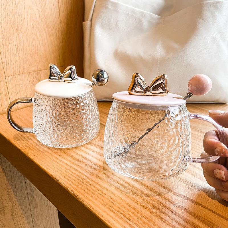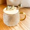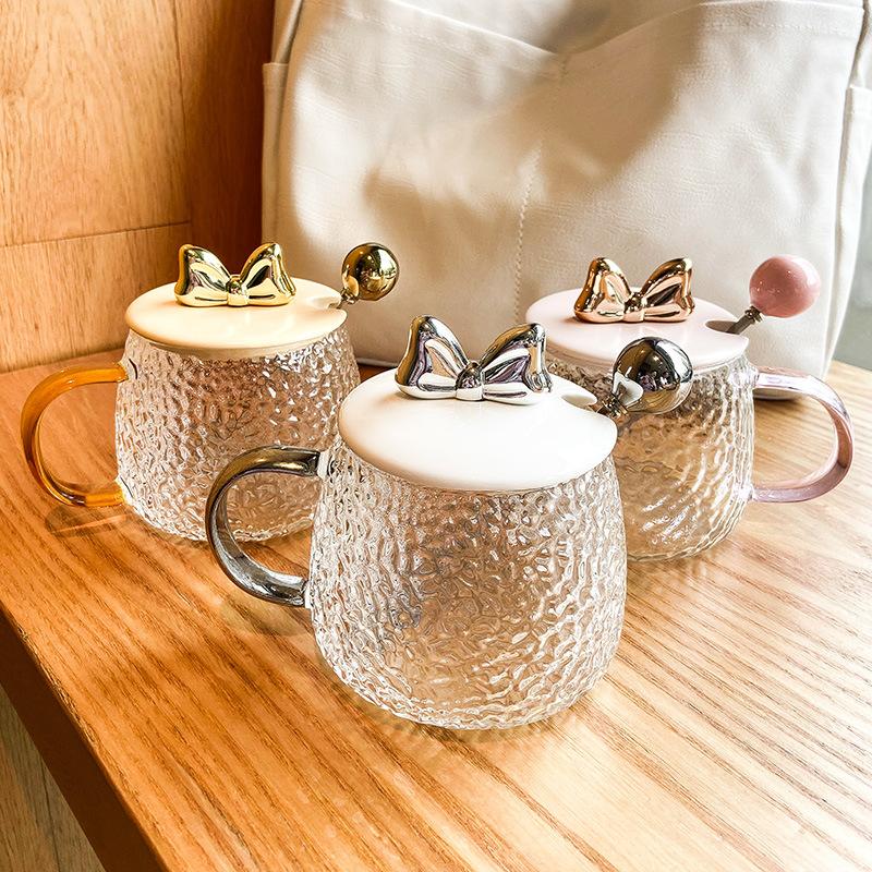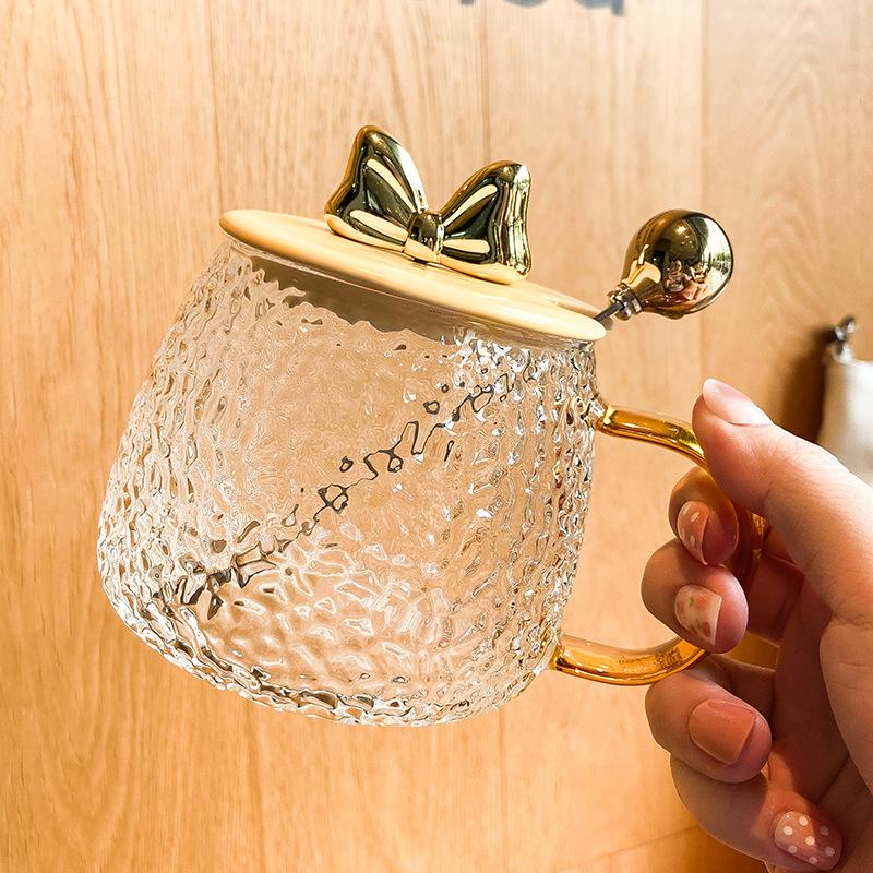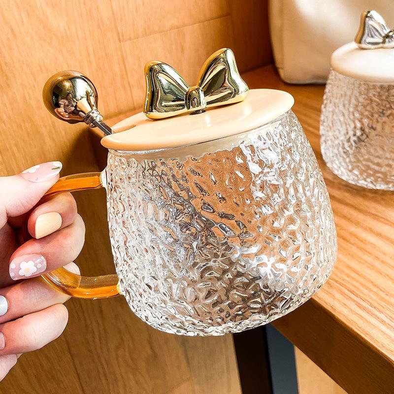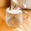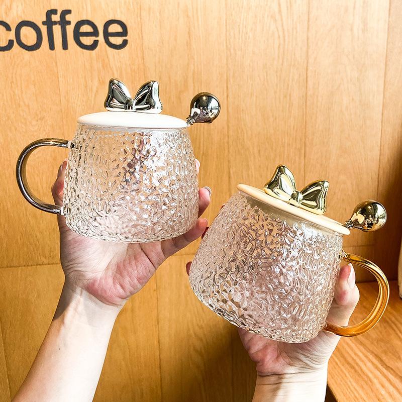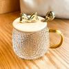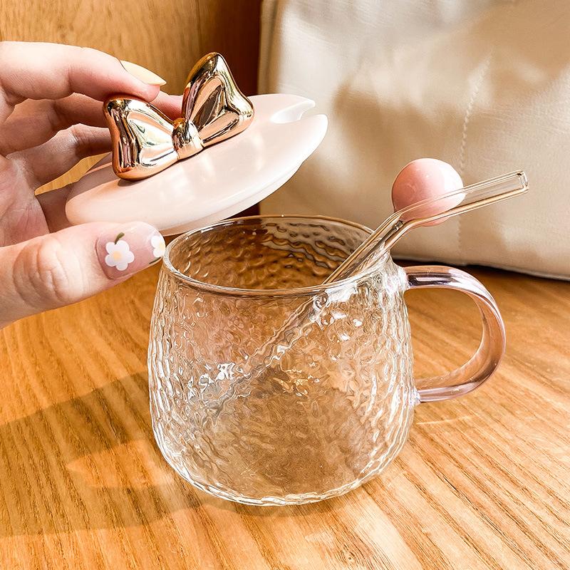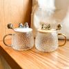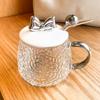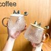 Taza de café y leche de lujo, ligera, de estilo ins, de cristal resistente al calor con tapa y cuchara, de aspecto elegante, para el hogar, para niña