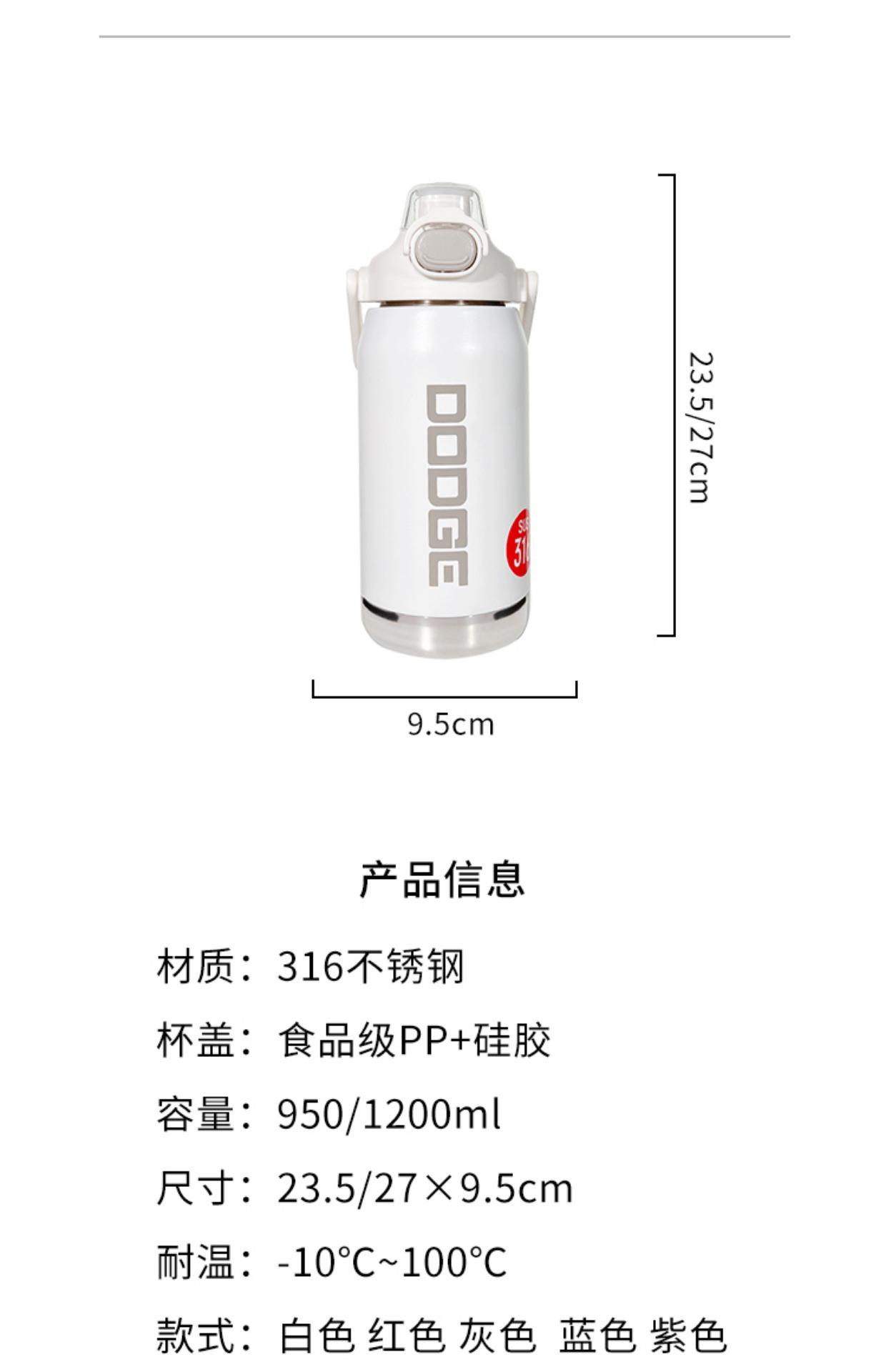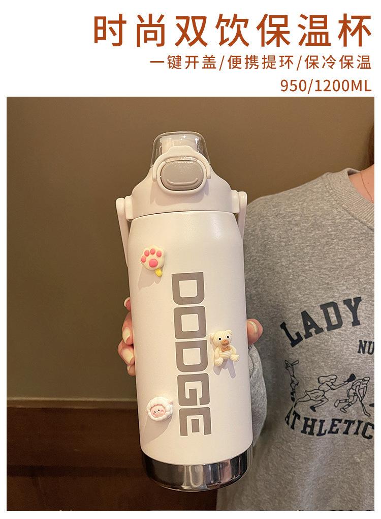 Taza Termo Portátil de Acero Inoxidable de Gran Capacidad Dodge para Niñas, para Exteriores, Fitness, Doble Bebida, Ventosa, Botella para Estudiantes
