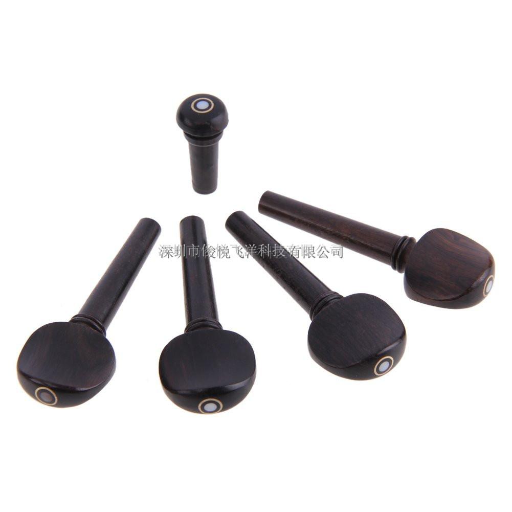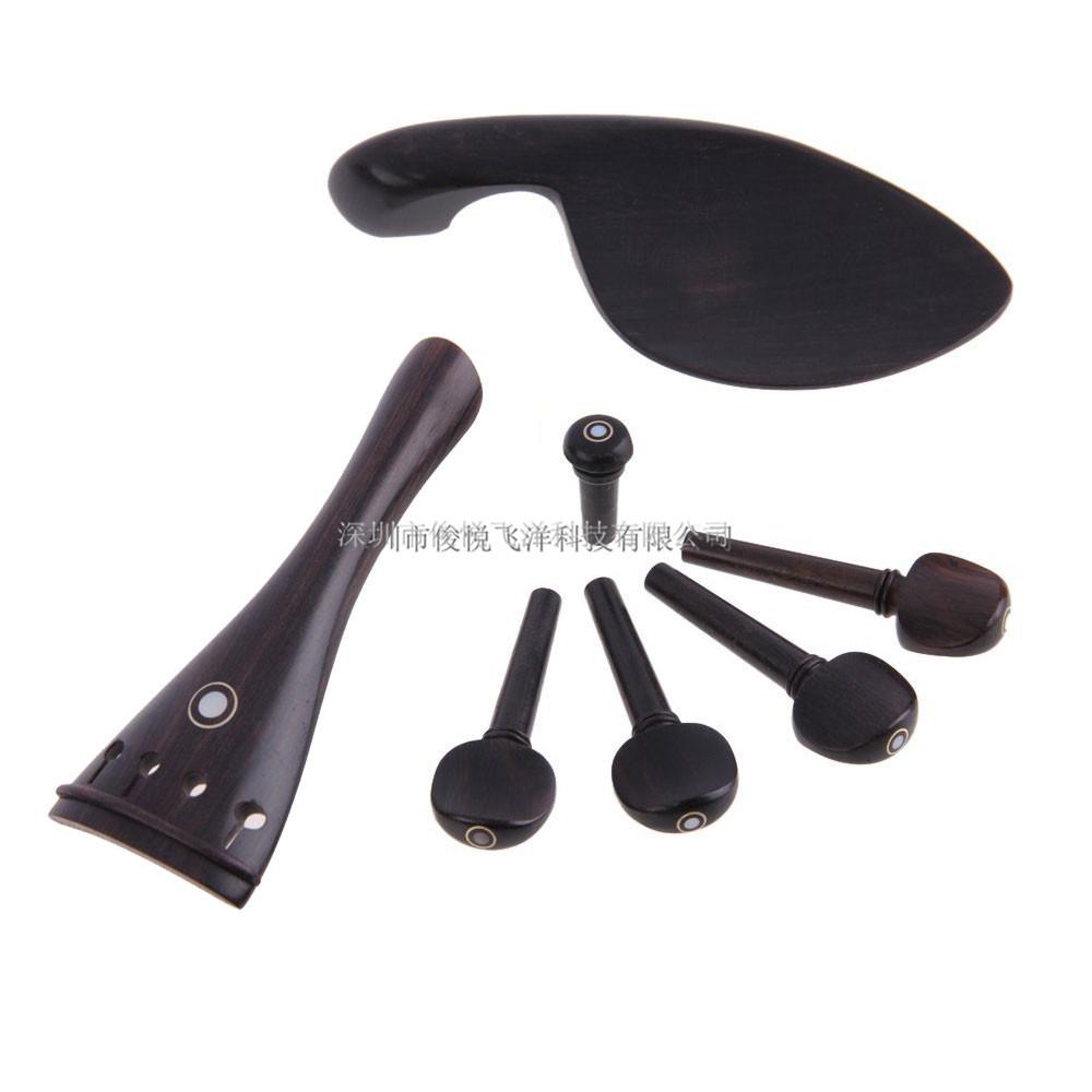Juego completo de accesorios de ébano para violín - clavijas + cordal + cordal + mentonera + 4 afinadores finos de hierro + alma + puente + tornillos positivos y negativos plateados (color natural) - tornillos de afinador fino dorados