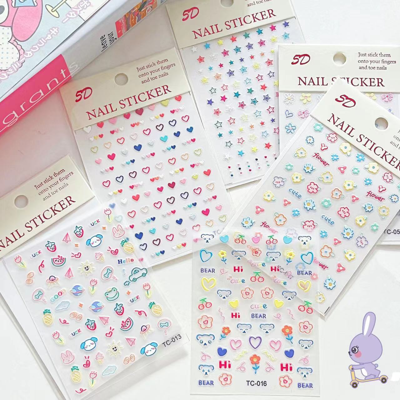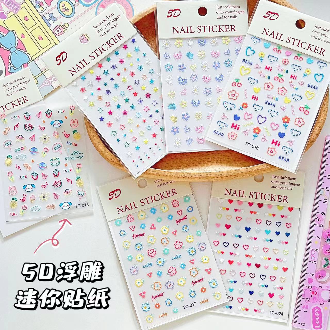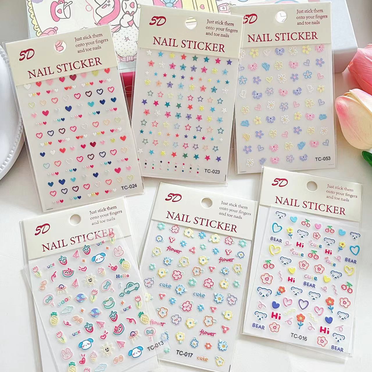 Calcomanías para uñas amor relieve calcomanías tridimensionales para uñas 5D estrellas flores pequeñas lindas calcomanías para arte de uñas pegatinas decorativas para funda de teléfono móvil