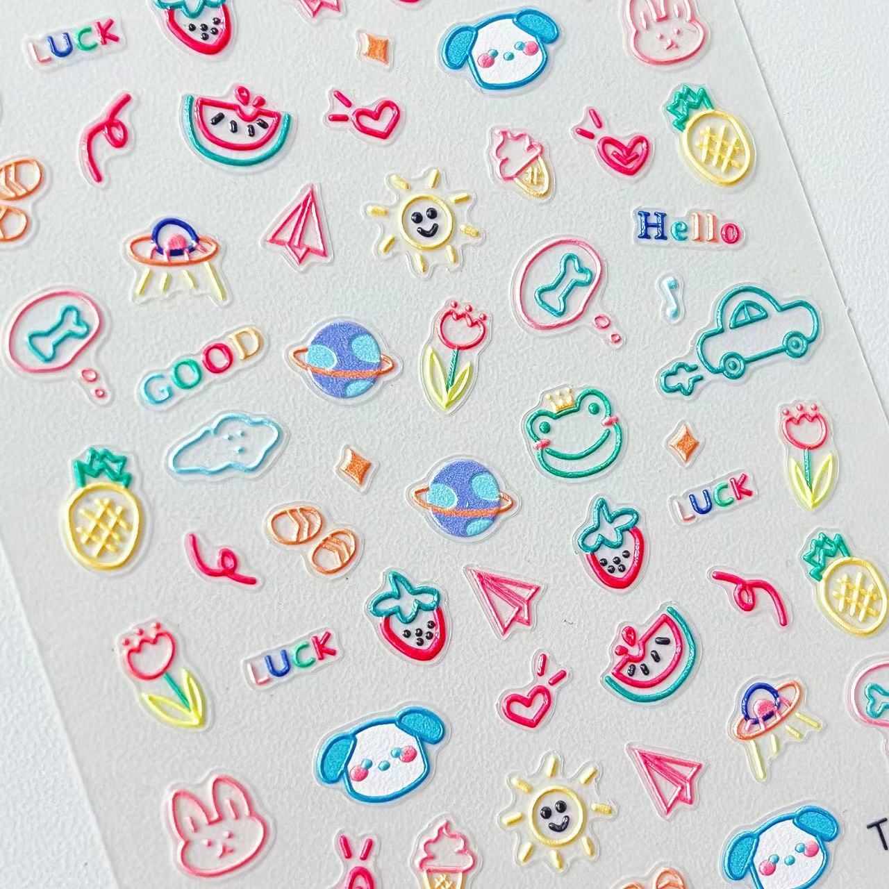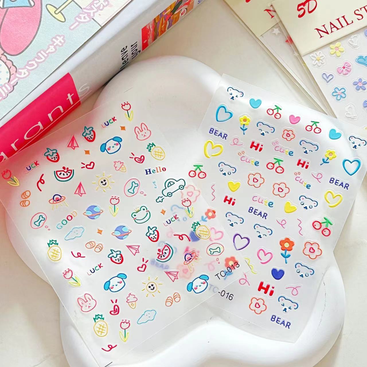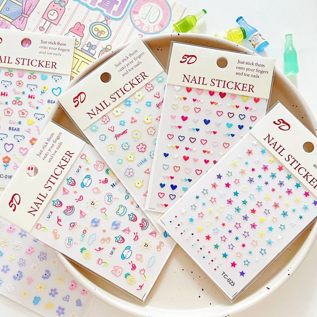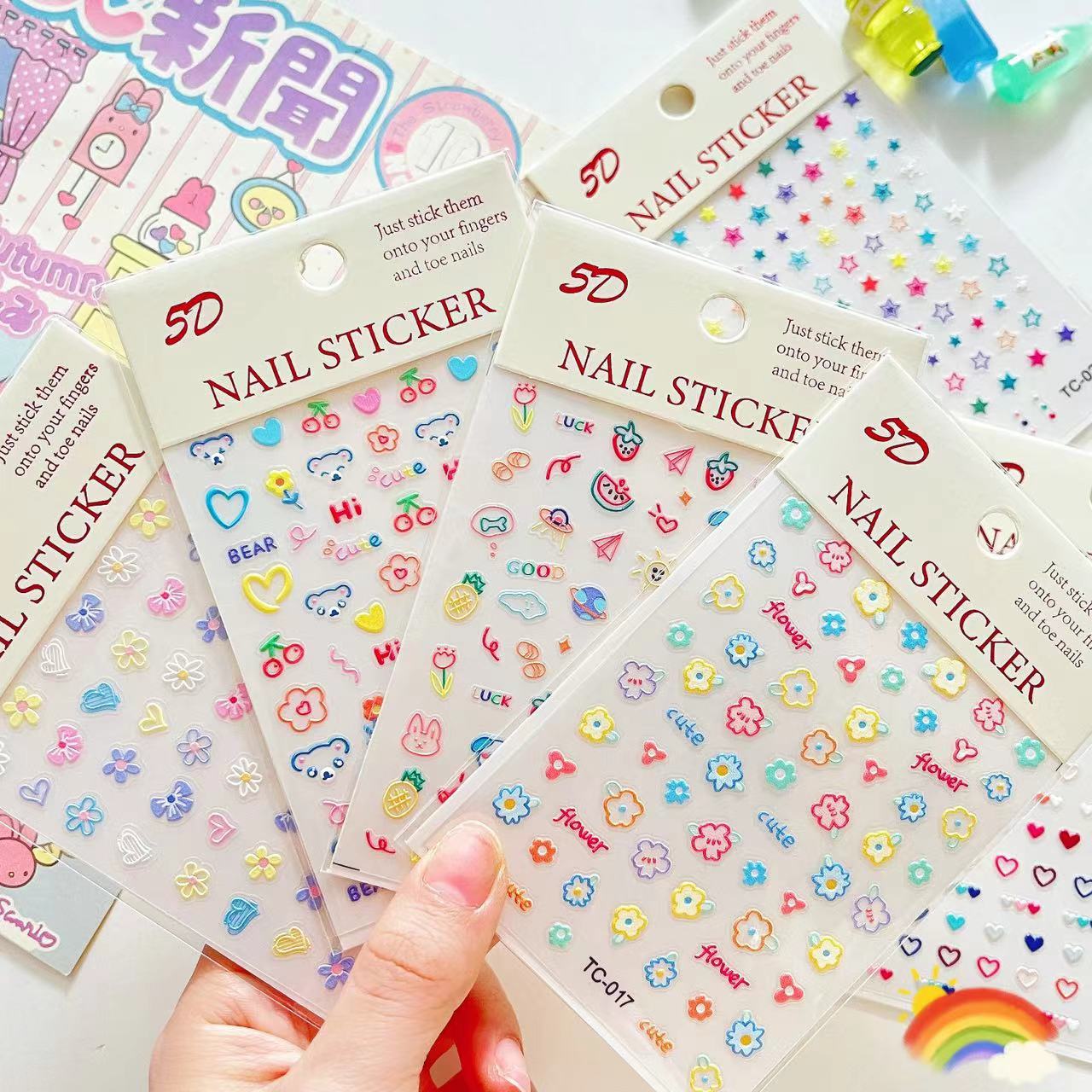 Calcomanías para uñas amor relieve calcomanías tridimensionales para uñas 5D estrellas flores pequeñas lindas calcomanías para arte de uñas pegatinas decorativas para funda de teléfono móvil