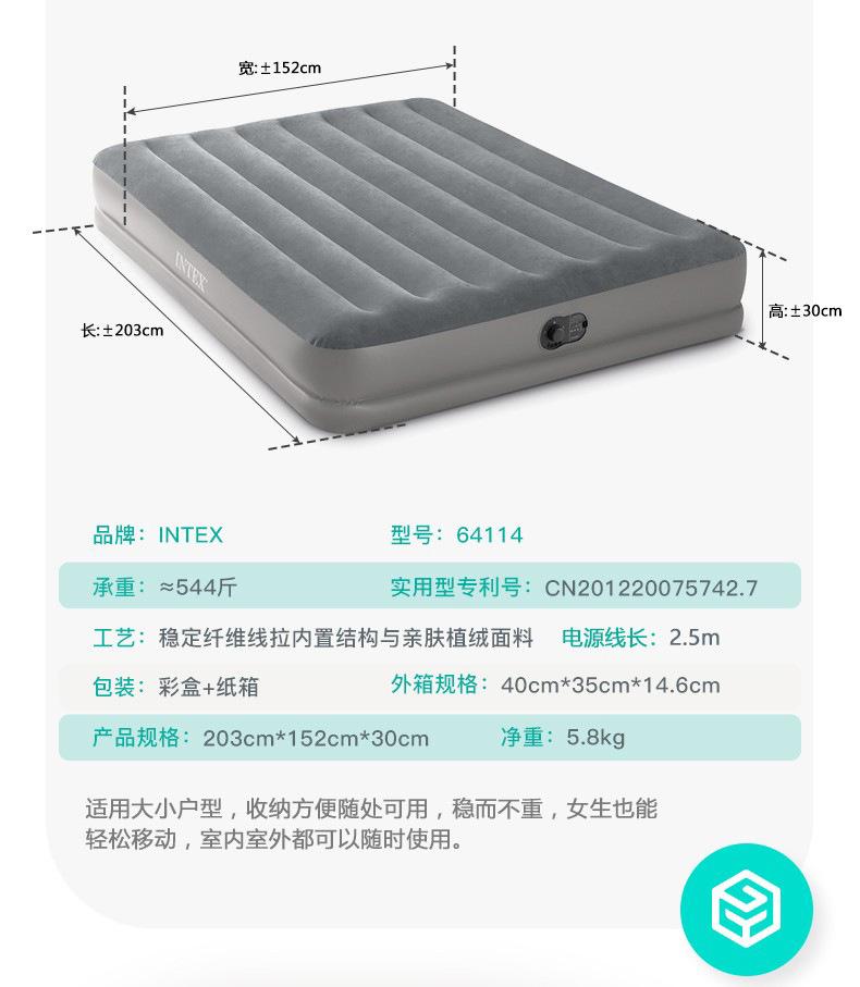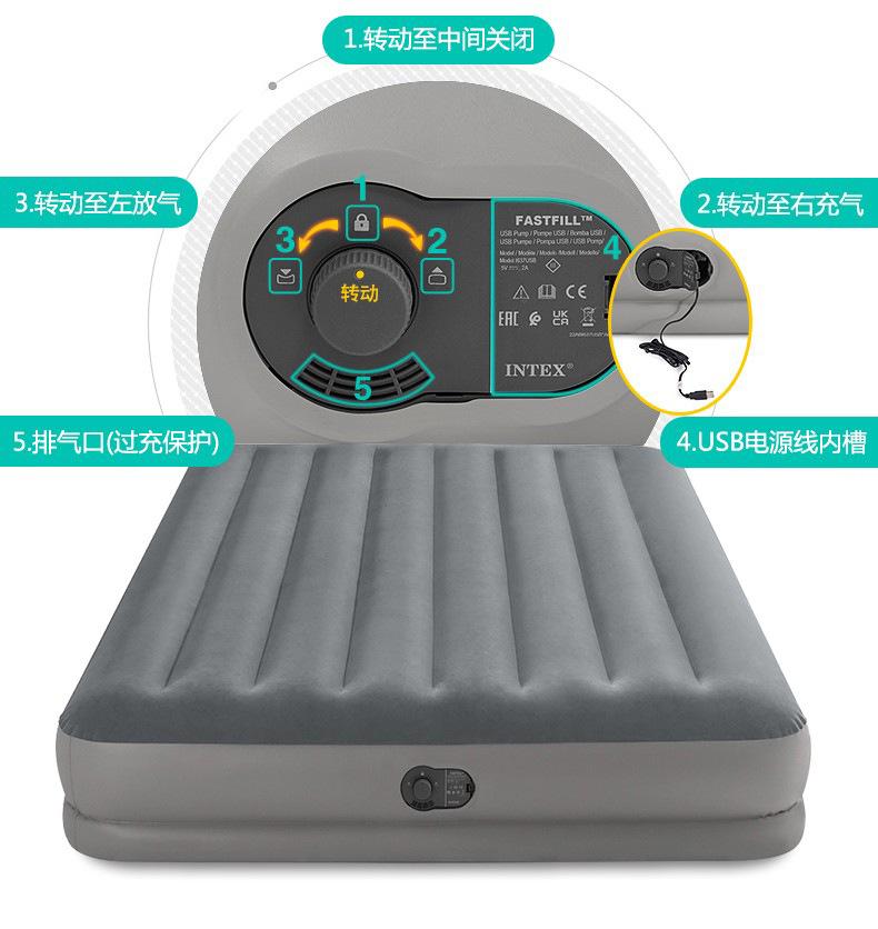 Nombre del producto: Cama de aire INTEX gris con bomba eléctrica incorporada USB
