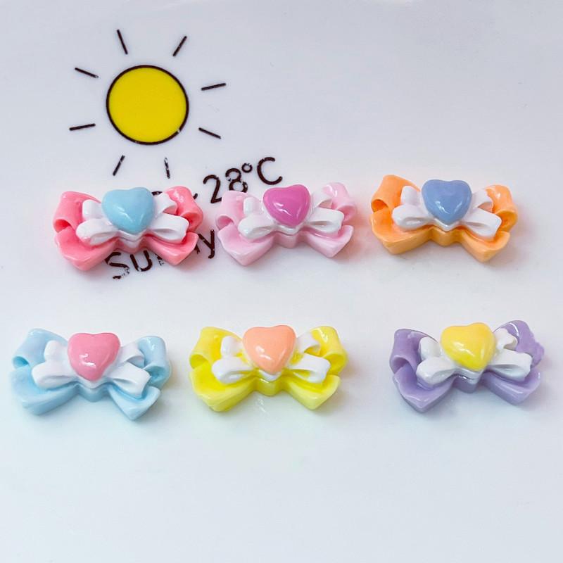 Lazo de amor brillante color macarrón crema pegamento accesorios para el cabello pasador parche hecho a mano casero material de resina