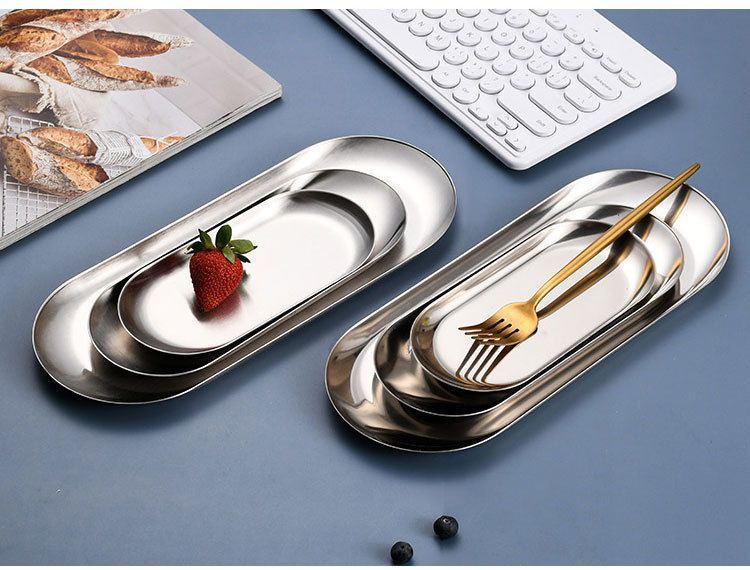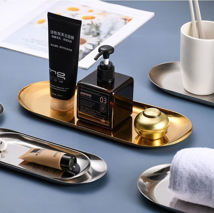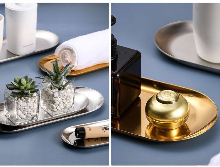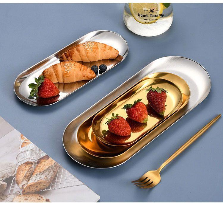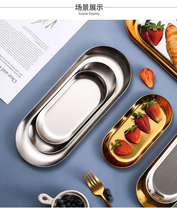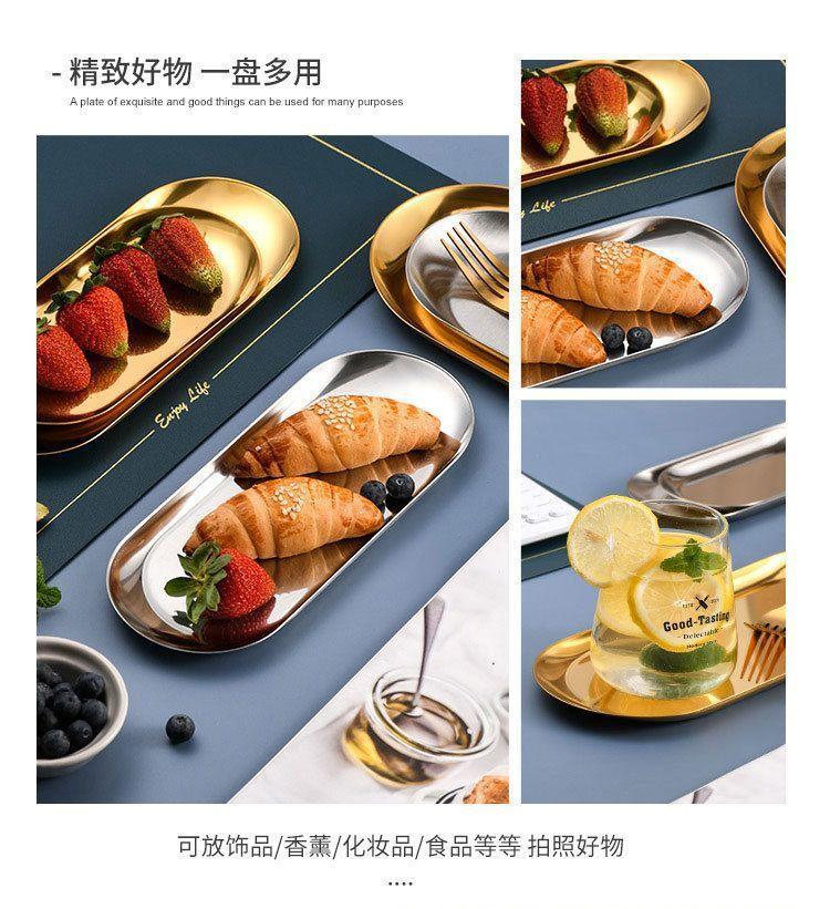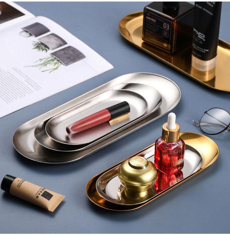 Bandeja dorada de acero inoxidable de estilo nórdico, bandeja ovalada para guardar joyas, bandeja para dim sum doméstico, bandeja para toallas de hotel, bandeja para barbacoa