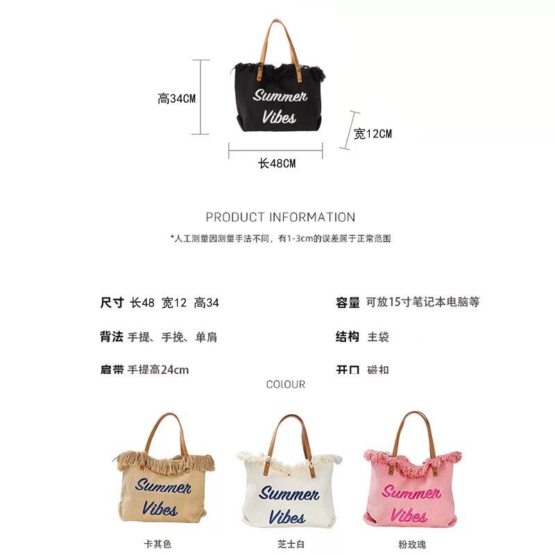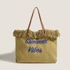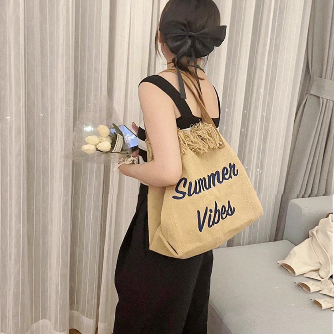 Bolsa de Lona de Gran Capacidad Bolsa Tote con Letra Bordada Bolso de Mano Bolsa para Mujer Bolsa Tejida de Playa Bolso de Hombro Bolsa