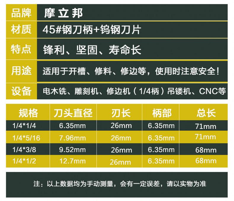 Straight knife 1/4*1/4, Straight knife 1/4*5/16, Straight knife 1/4*3/8, Straight knife 1/4*1/2, Round bottom ...