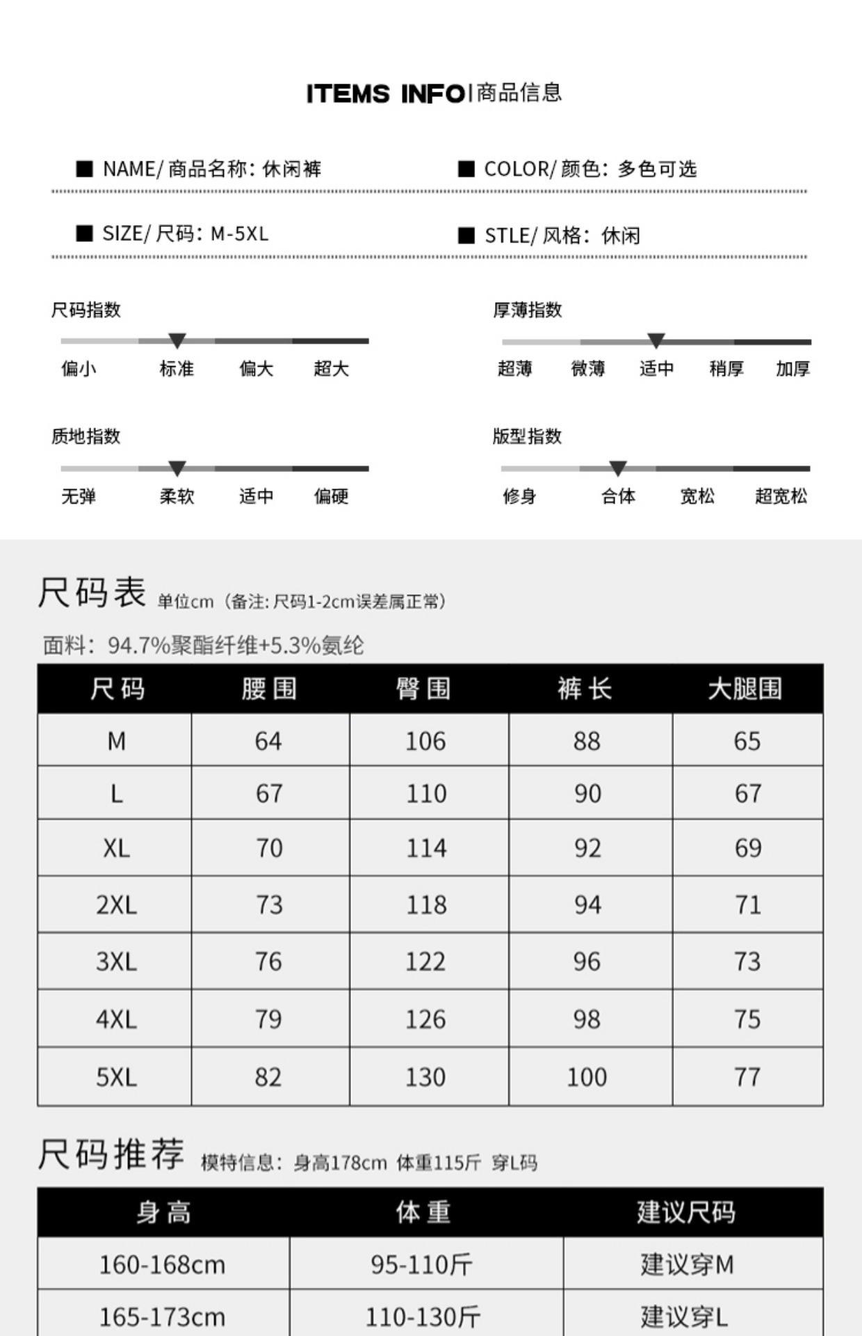 M, L, XL, XXL, XXXL, 4XL, 5XL