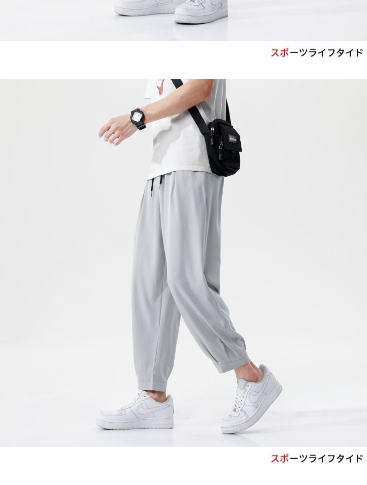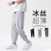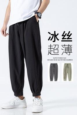 Pantalones de seda de hielo fino de verano para hombre, pantalones de pierna ancha, pantalones casuales de moda 2024, talla grande, pantalones deportivos holgados al por mayor