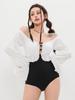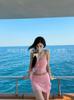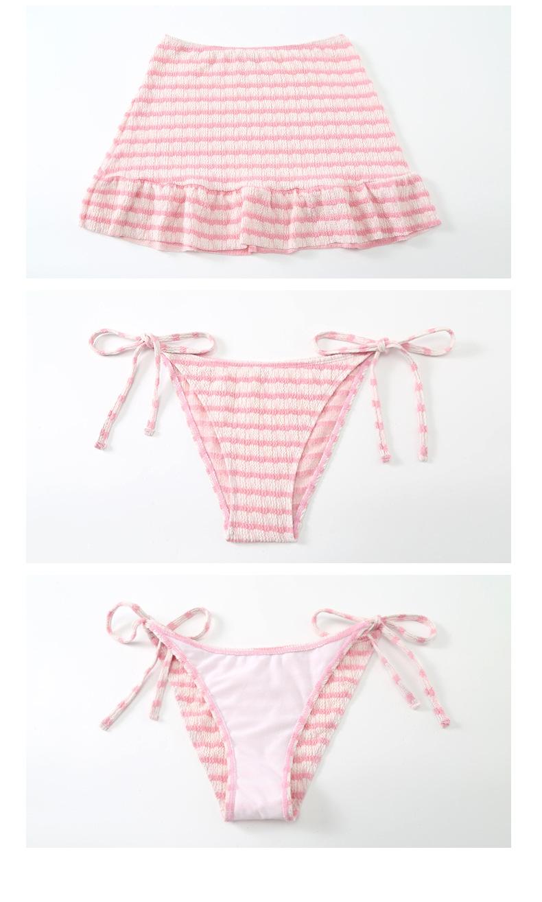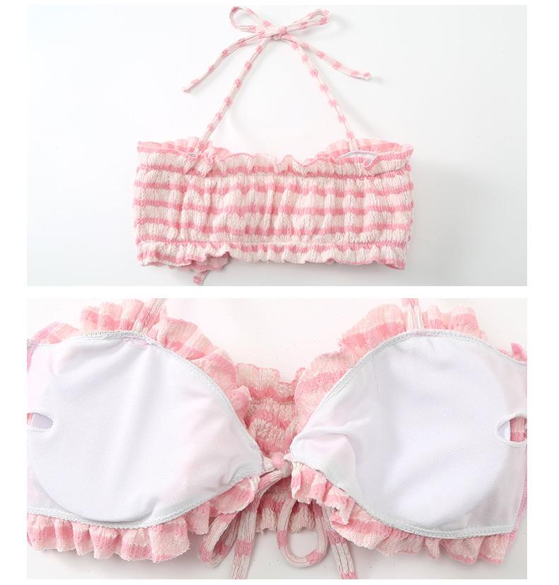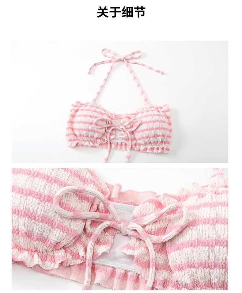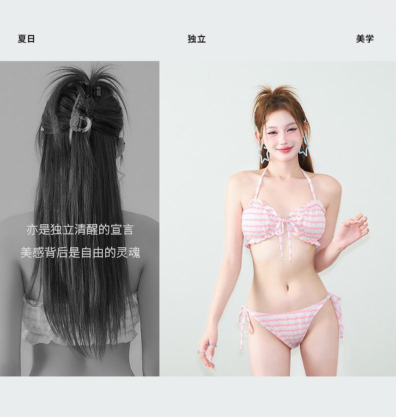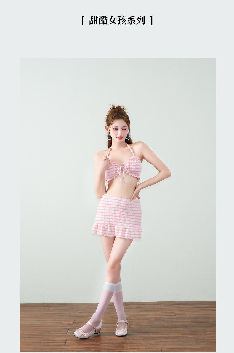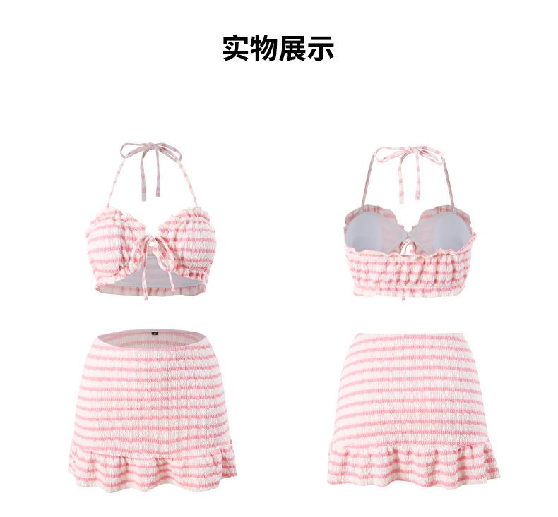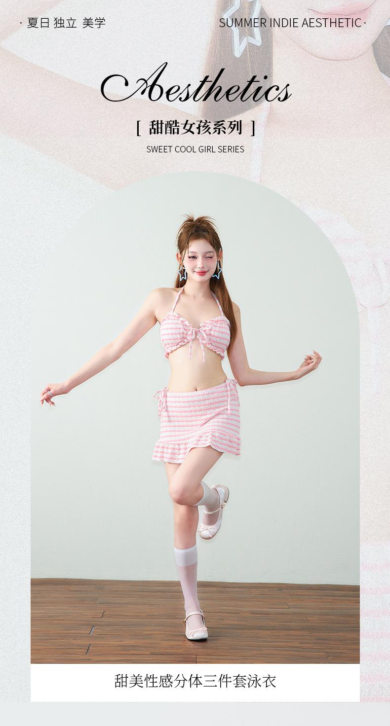 Traje de baño de tres piezas con abertura y cuello halter con cordones, estilo Chanel, ligero, de lujo, a rayas, para niña dulce, puro deseo, para mujer