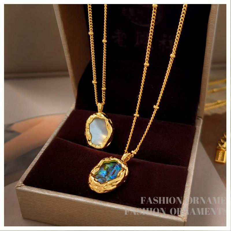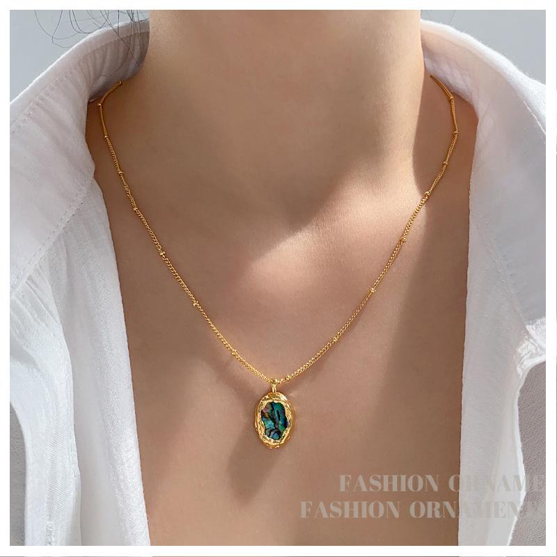 Collar con colgante verde abuela simple de lujo ligero personalizado, collar de concha de alta gama, cadena de clavícula simple y moderna para mujer 68