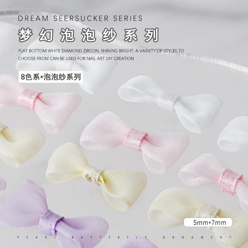 Lazo Arte de Uñas Joyería Tela Malla Sueño Seersucker Pajarita Gasa Joyería para Uñas Paquete de 5