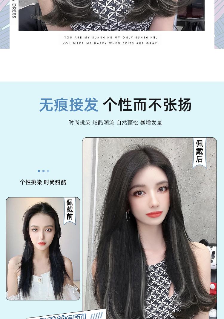 Peluca de mujer de cabello largo de una sola pieza, sin rastro, cabello artificial, tono ligero, invisible, mayor volumen del cabello.