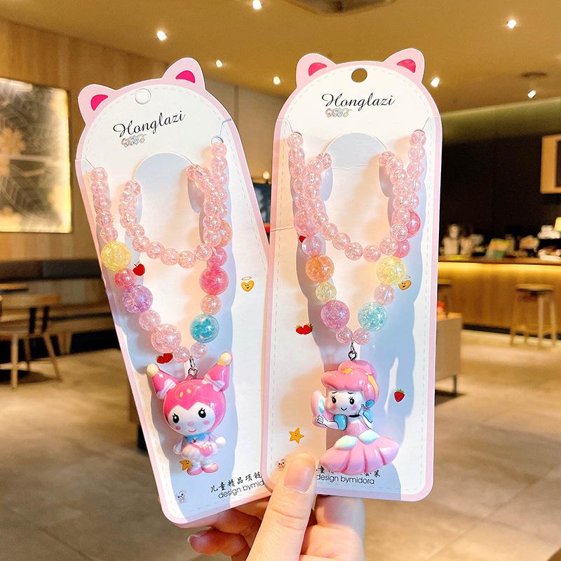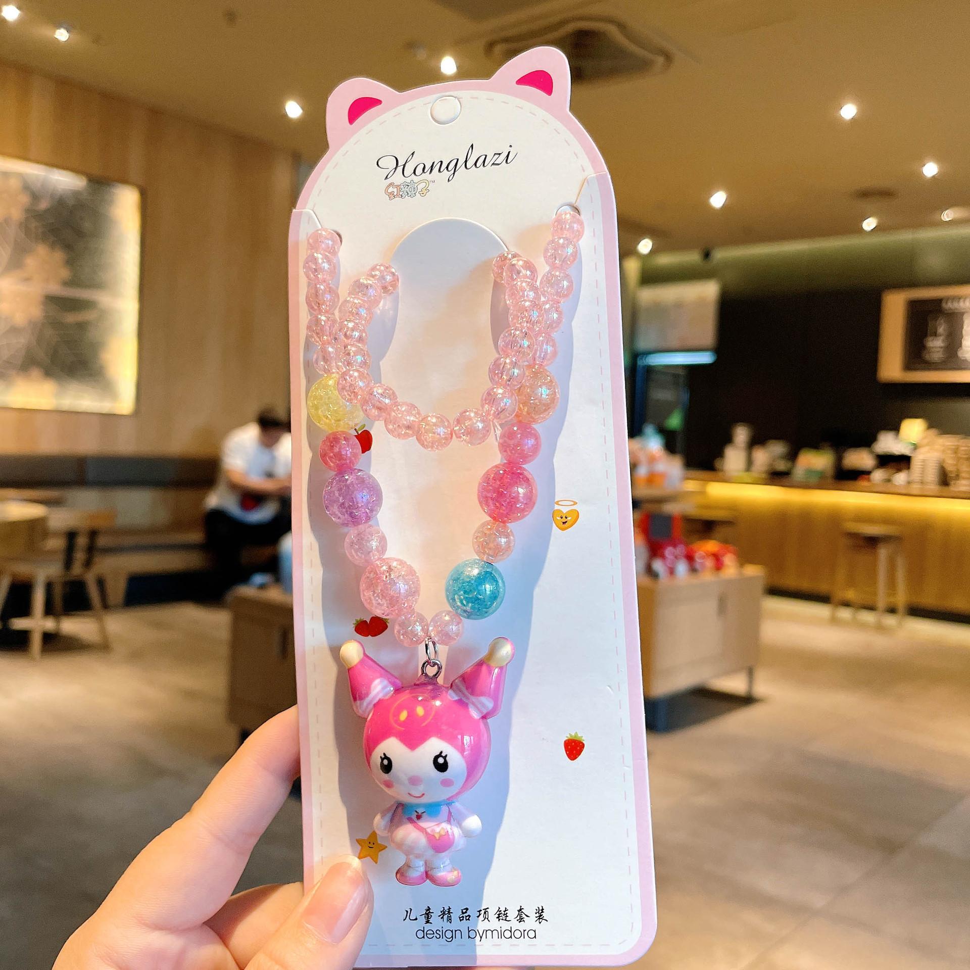 Conjunto de collar, pulsera, anillo y pendientes luminosos para niña pequeña, accesorios de joyería con dibujos animados, juguete para bebé niña