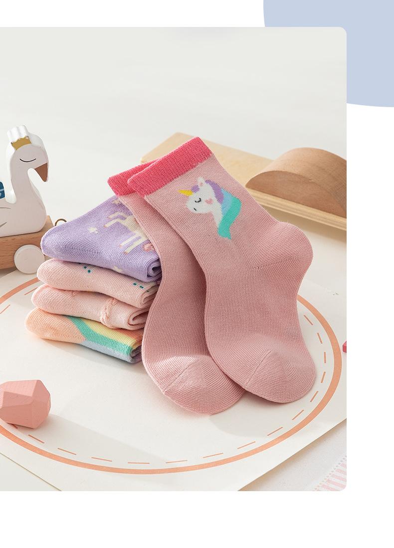 Calcetines de dibujos animados de estilo coreano para niños de otoño e invierno, 5 pares de calcetines de algodón para niños, calcetines de tubo medio, lindos calcetines de moda para bebés niños y niñas