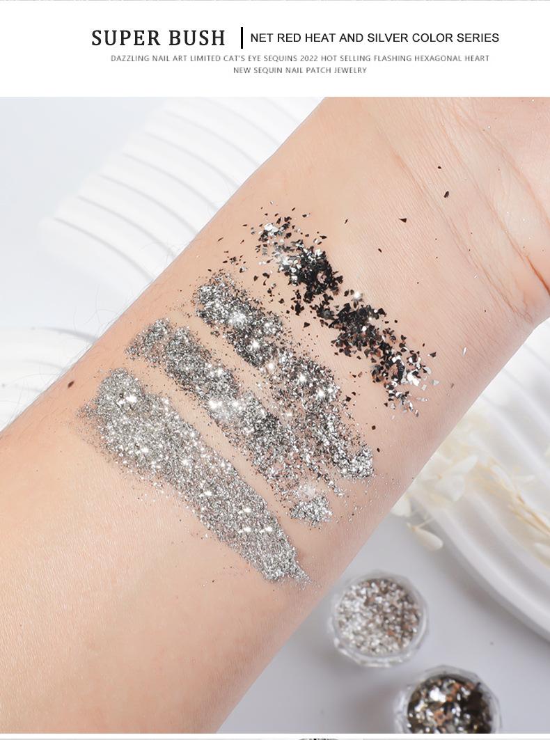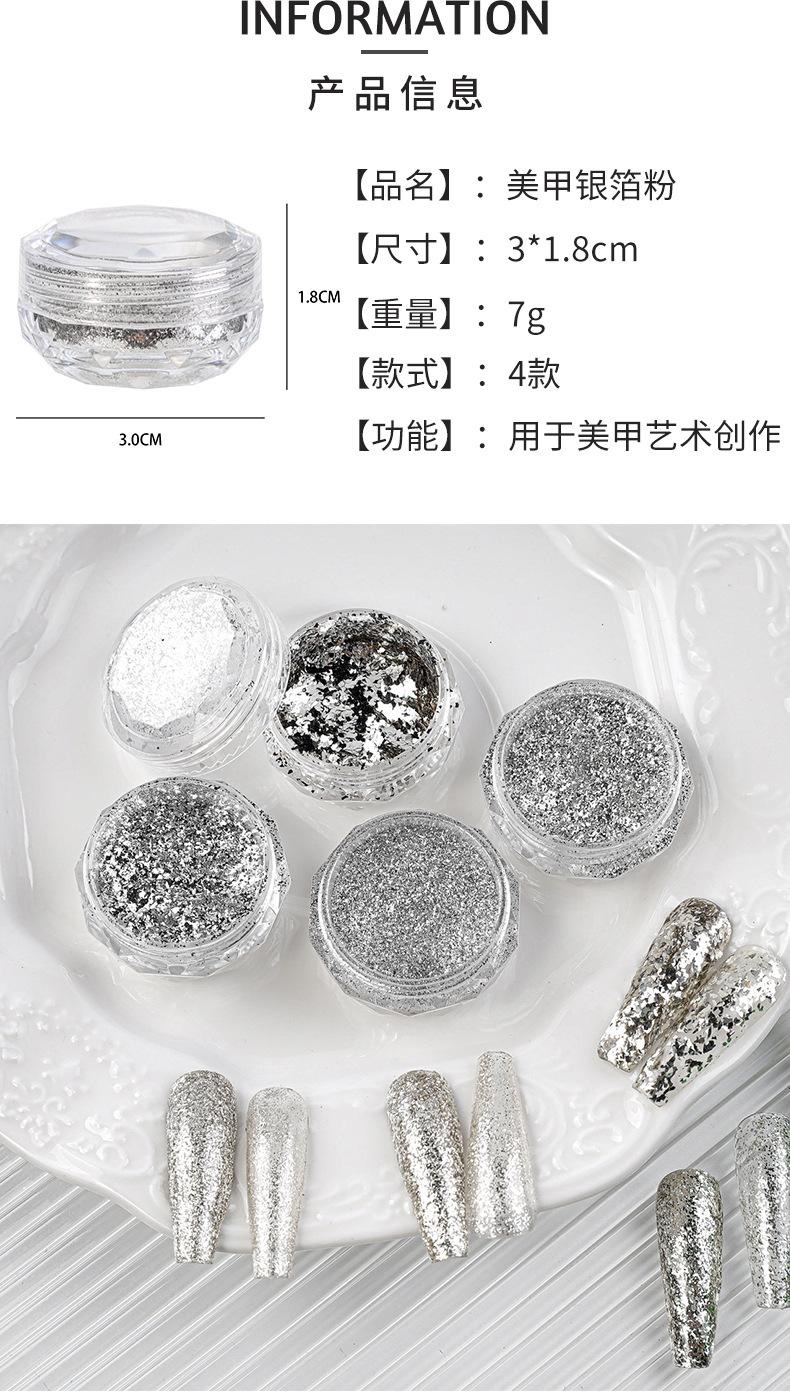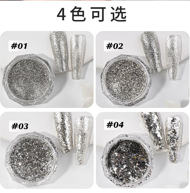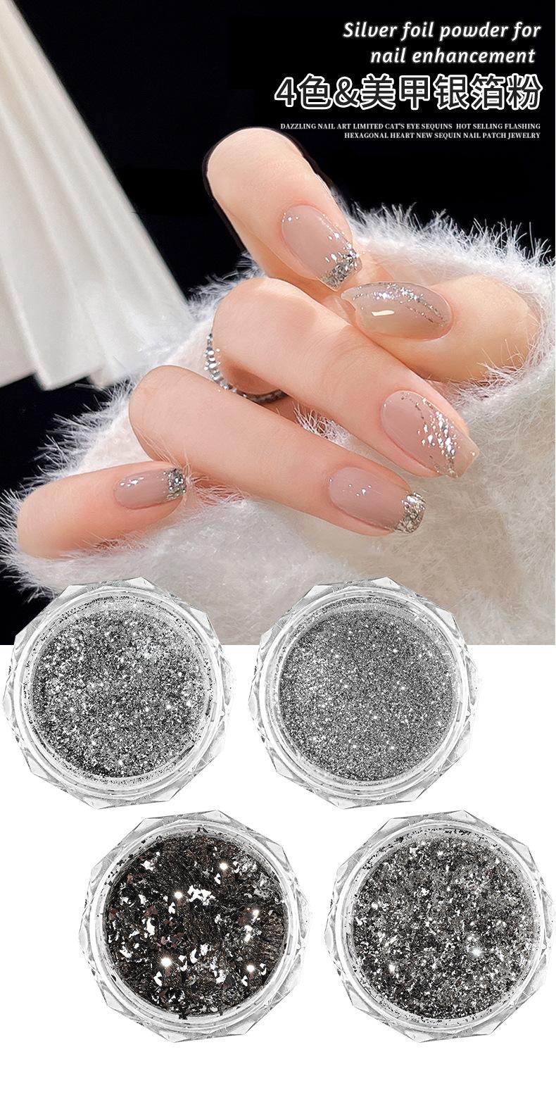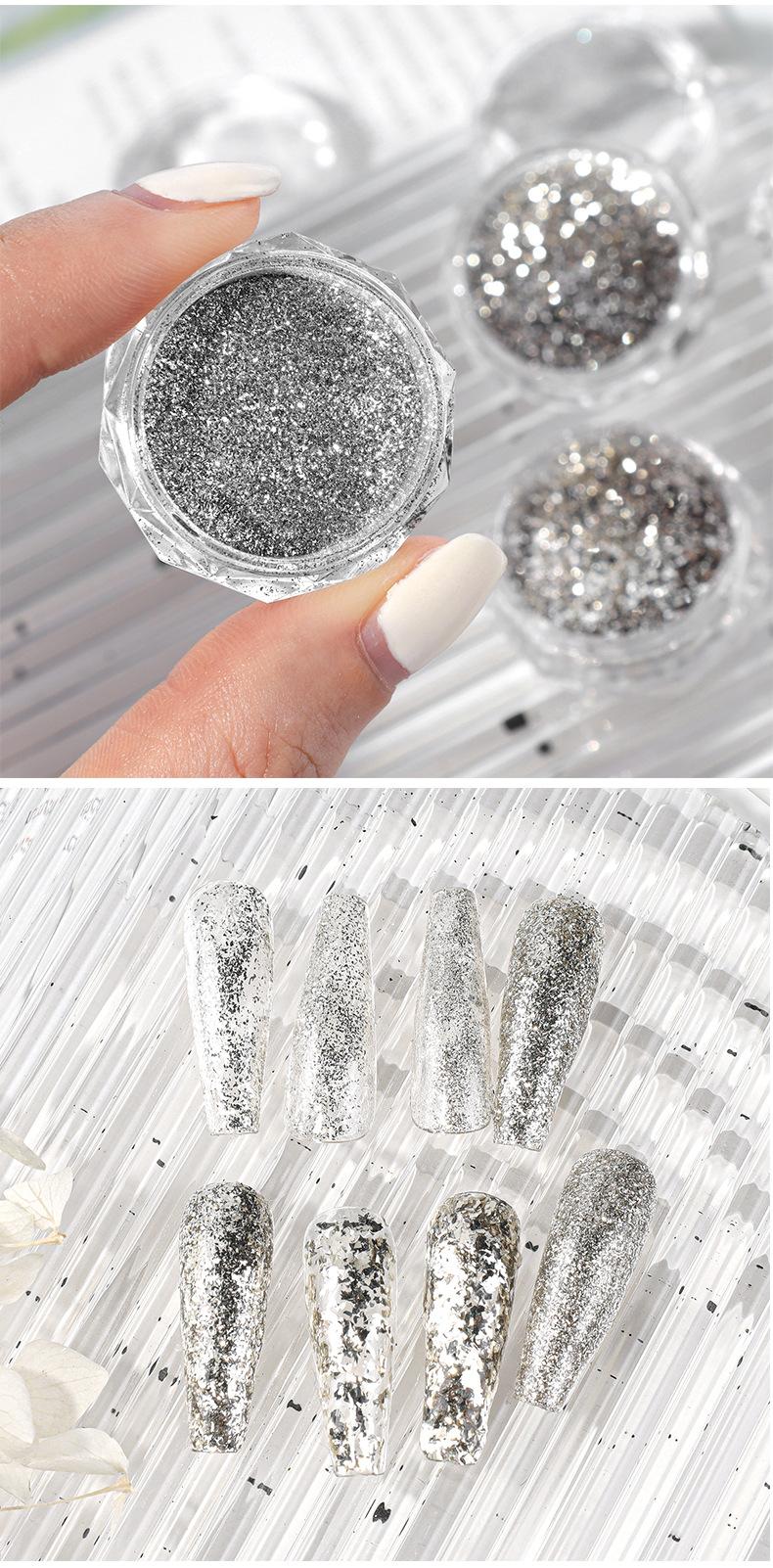 Glitter para uñas plata plata brillante lámina polvo de diamante triturado explosión uña lentejuelas para uñas ultrafinas fragmentos de alto brillo al por mayor