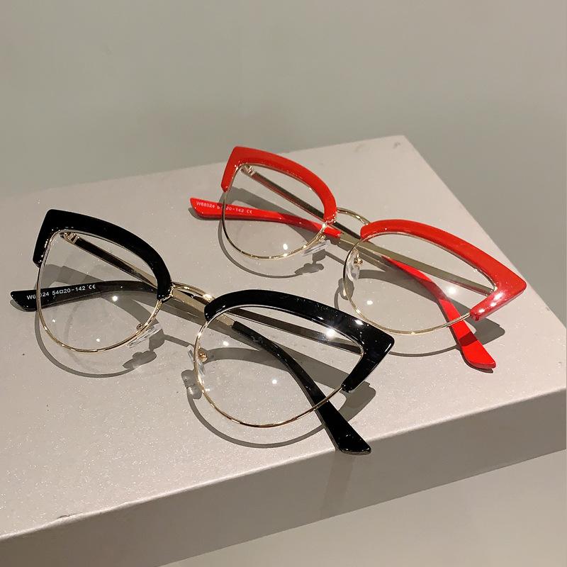 Nuevas gafas de sol transfronterizas con montura metálica antiazul de estilo retro con forma de ojo de gato, populares en Internet, con el mismo estilo, de aspecto sencillo y a la moda, personalizadas y planas.
