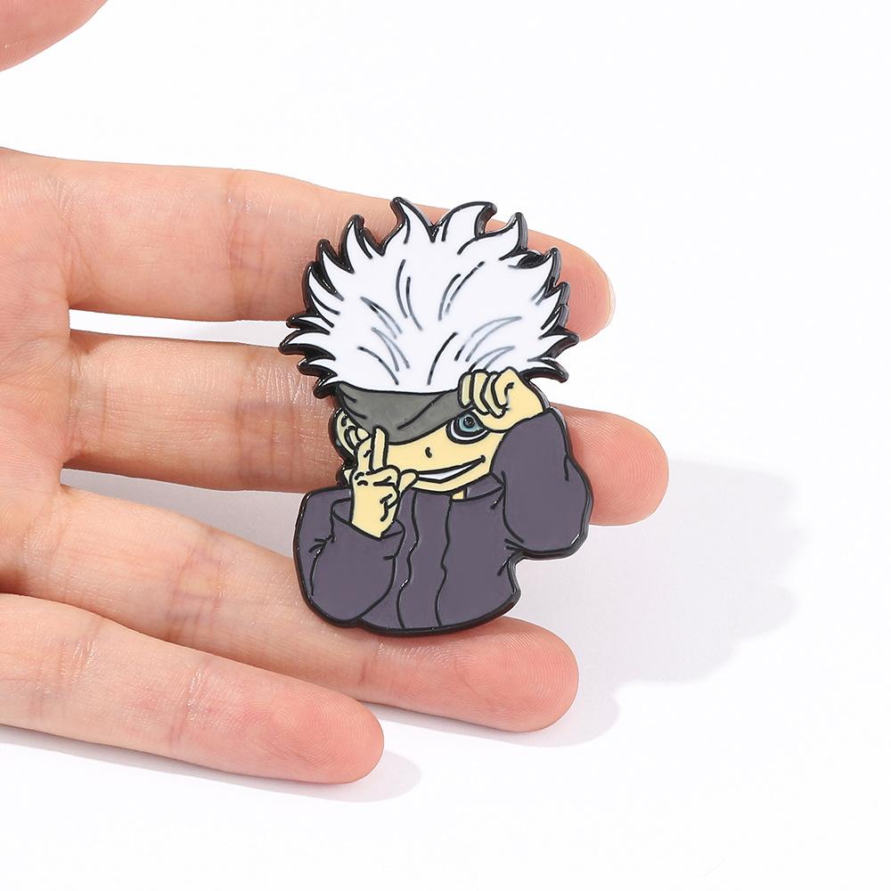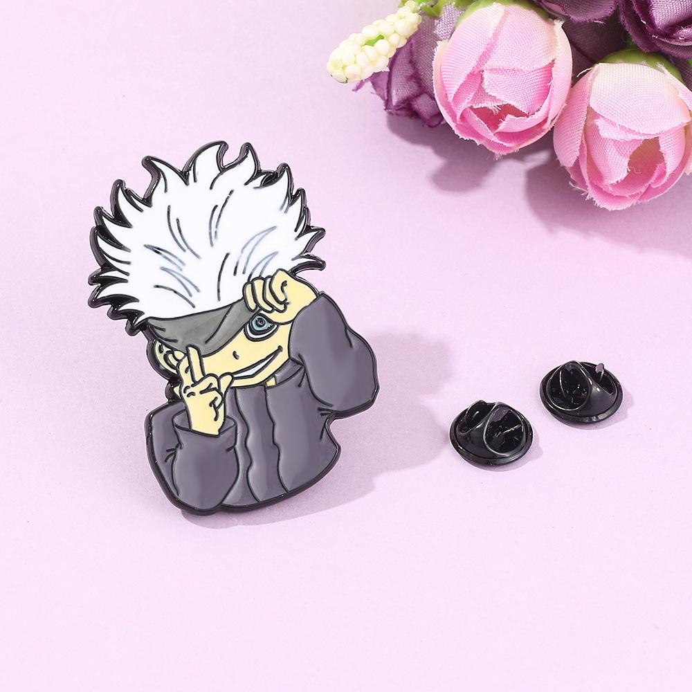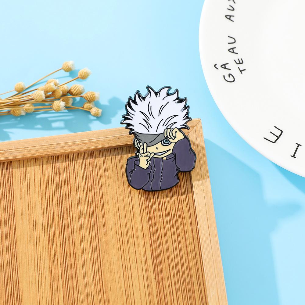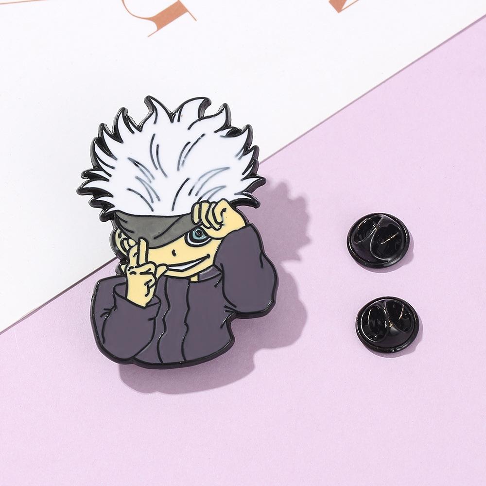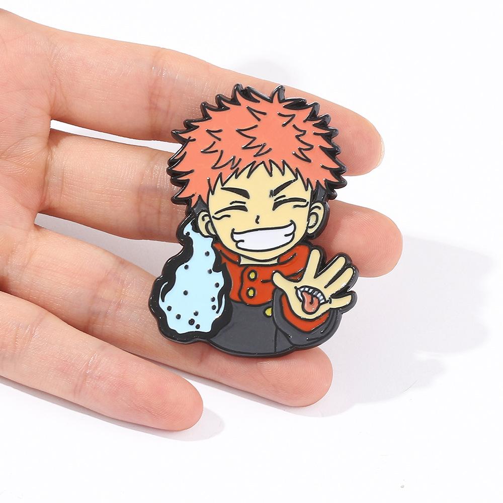 Animación de regreso a la guerra con hechizos japoneses que rodea cinco broches de iluminación, alfileres de metal relajados, accesorios para bolsos y ropa.