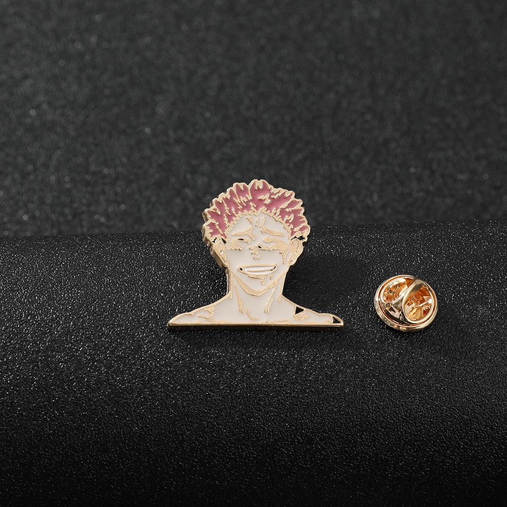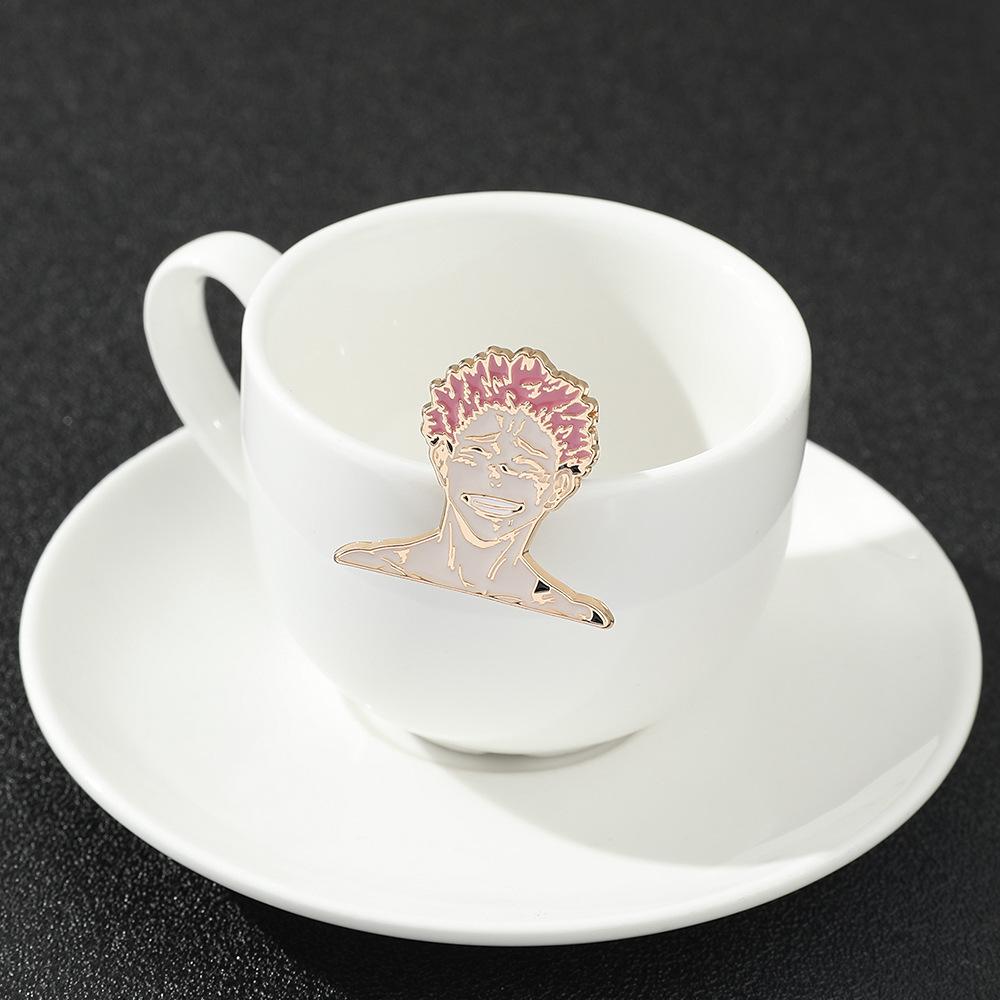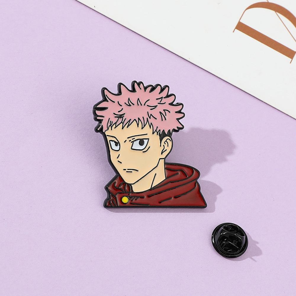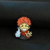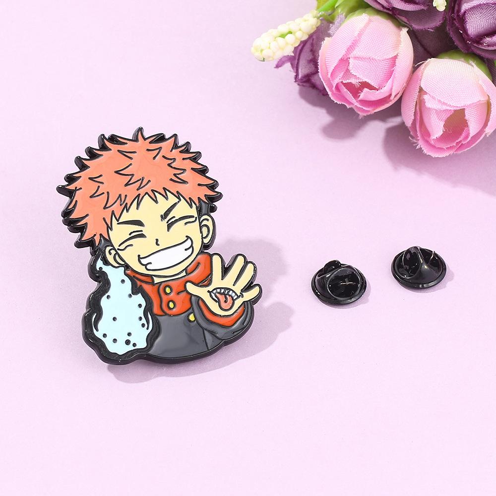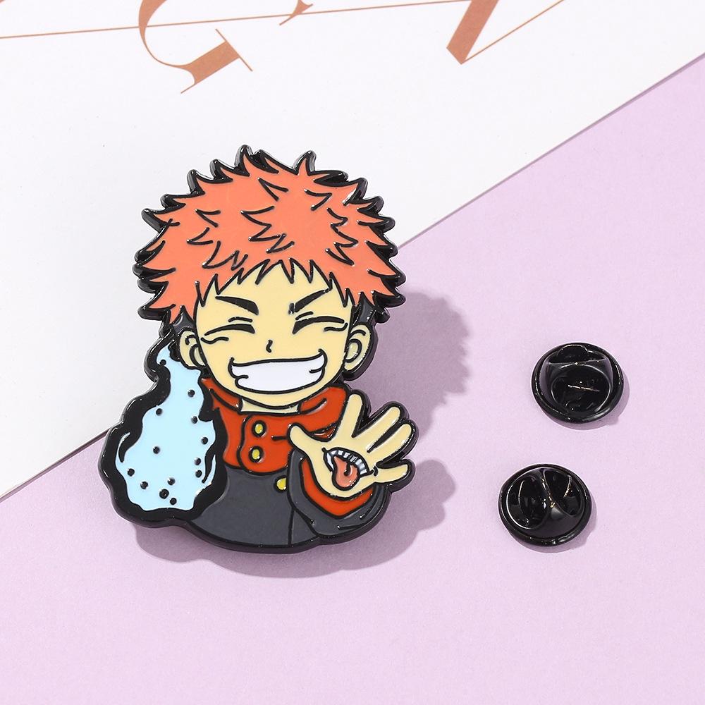 Animación de regreso a la guerra con hechizos japoneses que rodea cinco broches de iluminación, alfileres de metal relajados, accesorios para bolsos y ropa.