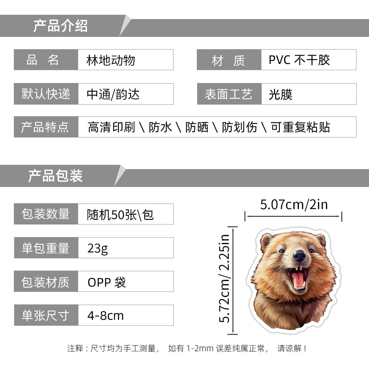 50 pegatinas de grafiti de animales del bosque con viento, lindas pegatinas decorativas impermeables para tazas, ordenadores y equipaje, venta al por mayor