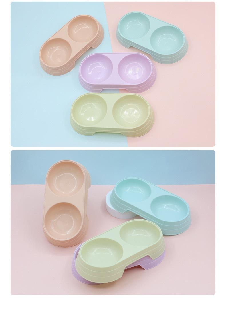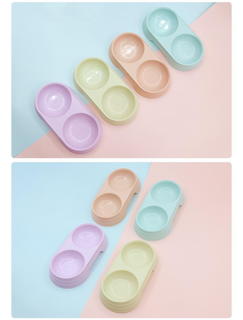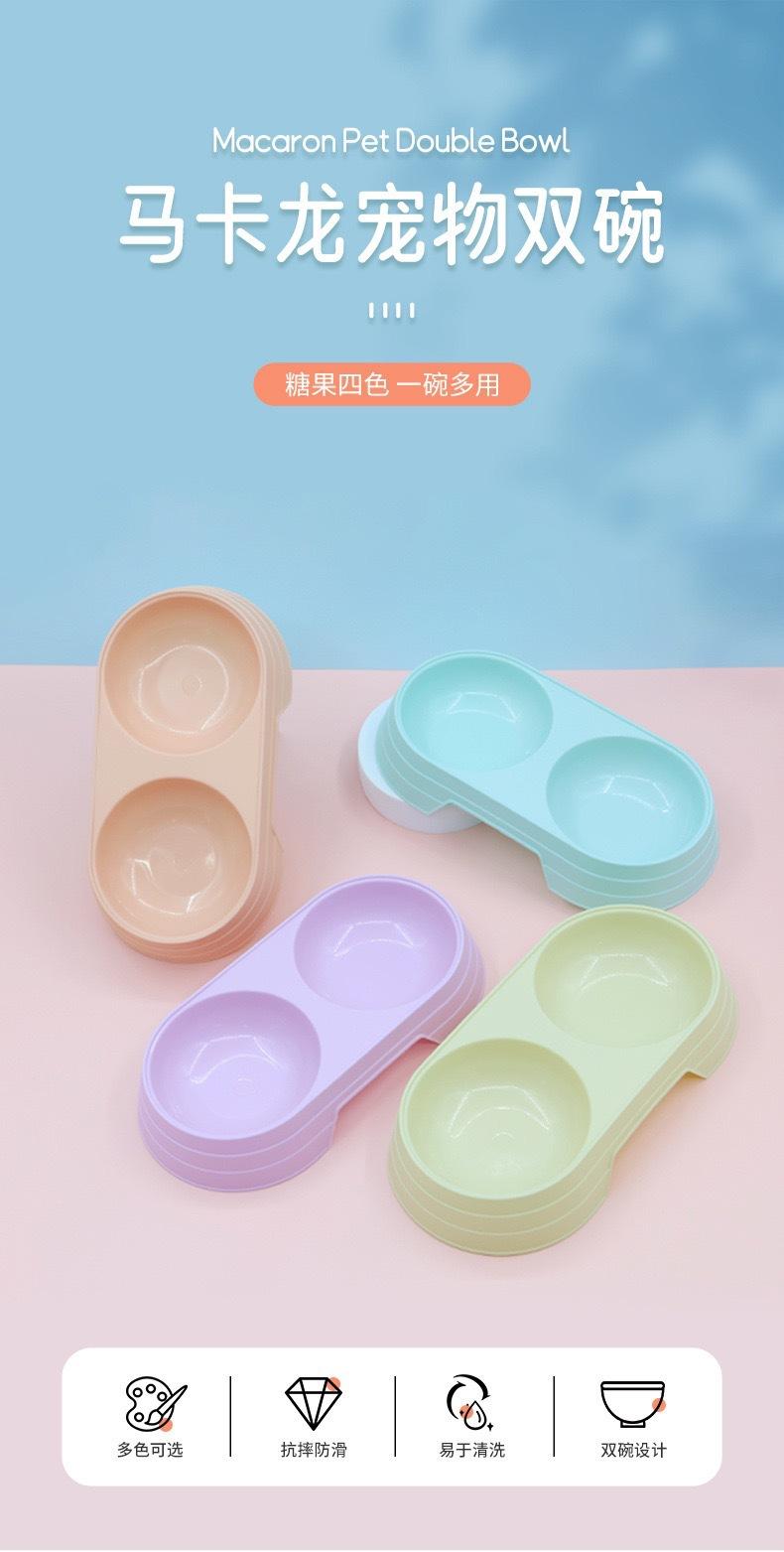Color macarrón mascota tazón doble tazón para gato tazón para perro tazón para perro comedero para mascotas para comer y beber dos en uno suministros para mascotas