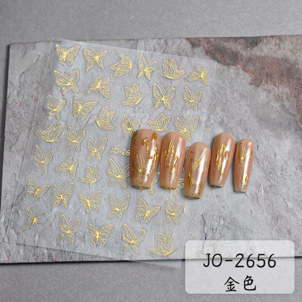 Pegatinas de uñas con diseño de mariposa japonesa hueca, diseño de alas de mariposa, color dorado, blanco y negro, de Little Red Book